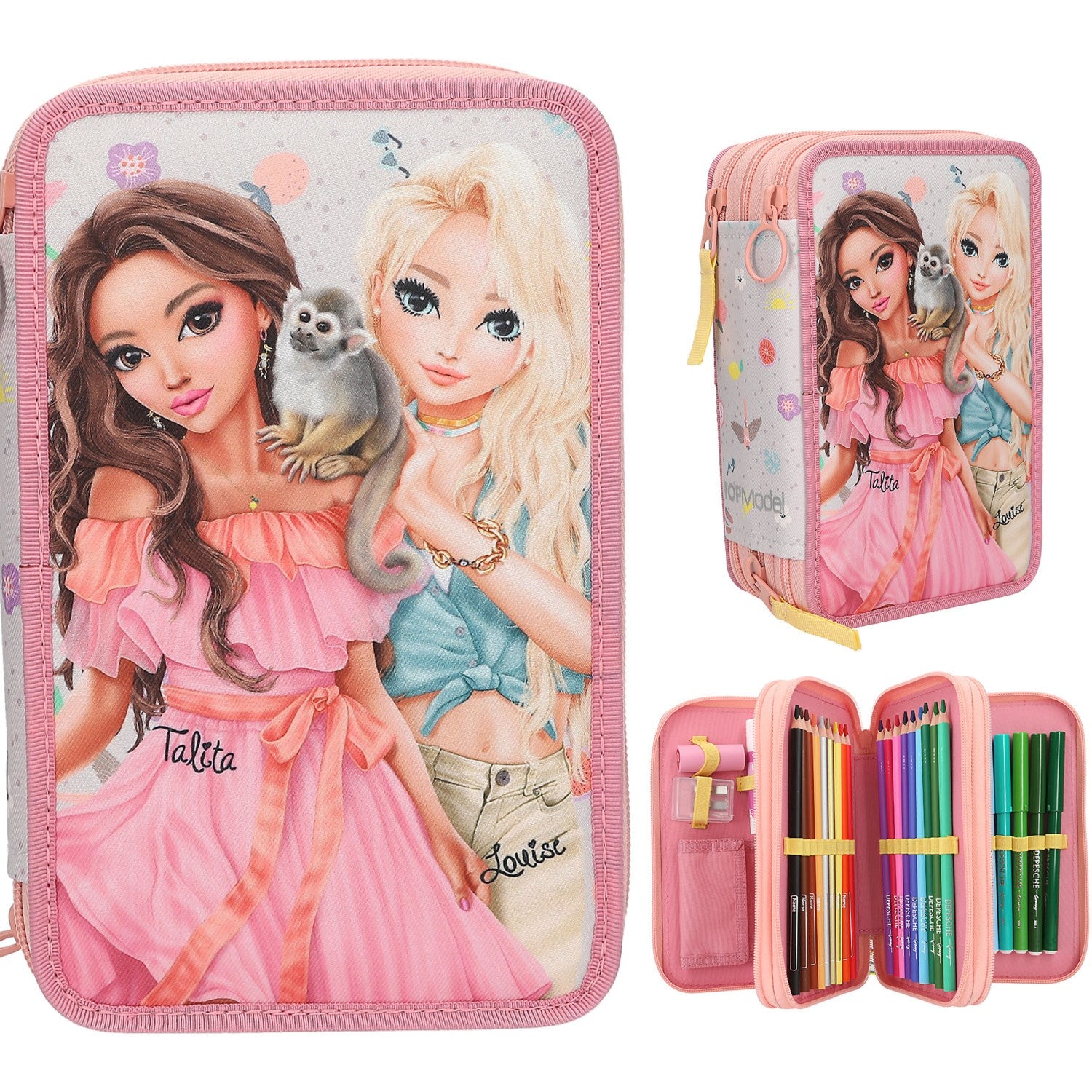 Oppdag den perfekte følgesvennen for skoledagen: TOPModel Juicy Triple Pencil Case! Dette sjarmerende pennaleet kommer fylt med nødvendigheter, fra 18 farge- og filtpenner til limstift, saks, og mer, alt organisert i tre separate rom for enkel tilgang. Utsiden prydes av et livlig design med apekatter, friske frukter, og sommerlige motiver, omgitt av rosa sømmer og gule glidelåstrekkerne, og er laget av slitesterkt 100% PES materiale. Dette gjør pennalvesken ikke bare praktisk, men også holdbar og lett å vedlikeholde, ideelt for hverdagslig bruk. La barnet ditt oppleve glæden av organisert og stimulerende læring med TOPModel sitt Juicy Triple Pencil Case!