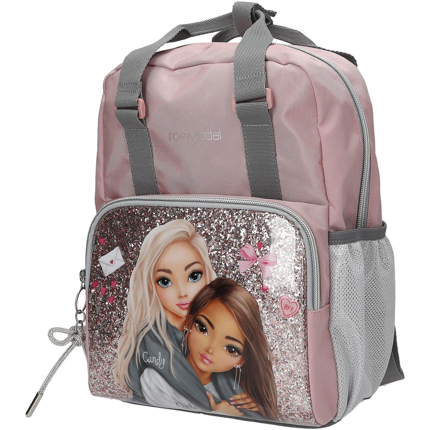 Unn lille skatten din en leken og praktisk skolestart med TOPModel My BFF Small Rygsekk. Denne nydelig rosa-grå sekken pyntet med et glitrende dobbeltmotiv av modeller og en stor, glitrende sløyfe på glidelåsen vil helt sikkert vekke oppmerksomhet på skolegården. Sekken er designet med tanke på komfort og enkel bruk, med justerbare skulderstropper og håndtak som enkelt kan festes sammen med en trykknapp for sikker bæring. Inneholder praktiske side lommer av glitrende nettingmateriale og en stabil, hengslet base som gjør organiseringen både enkel og morsom. Perfekt for å holde skolesakene trygt og organisert, mens de små bærer et snev av magi på ryggen. Dimensjoner: 15,5x24x28 cm; hovedmateriale: 100% polyester, trimming: 100% PVC.