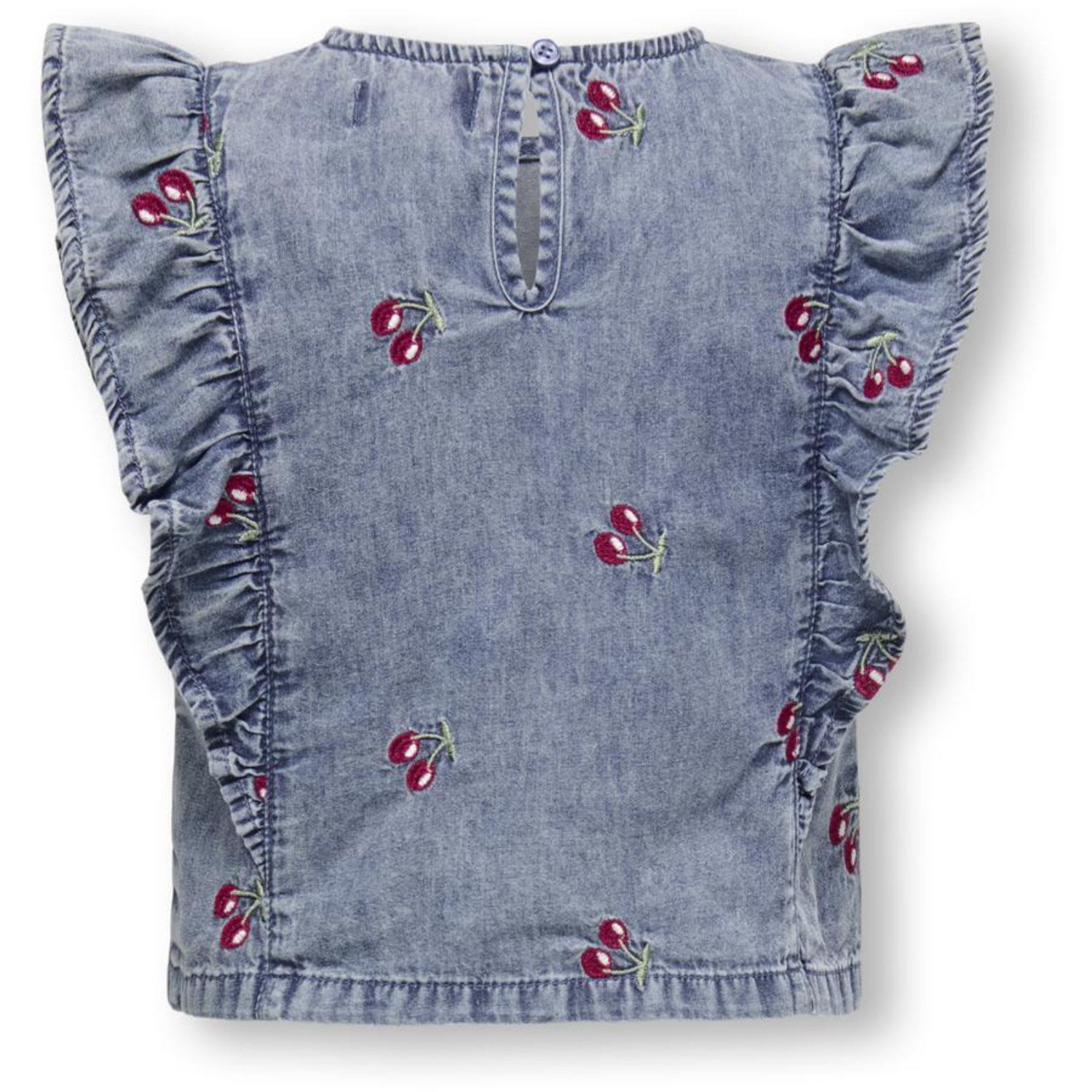 Kids ONLY MINI Medium Blue Denim Cherry Embroidery Dandy Frill Cherry Topp Denim