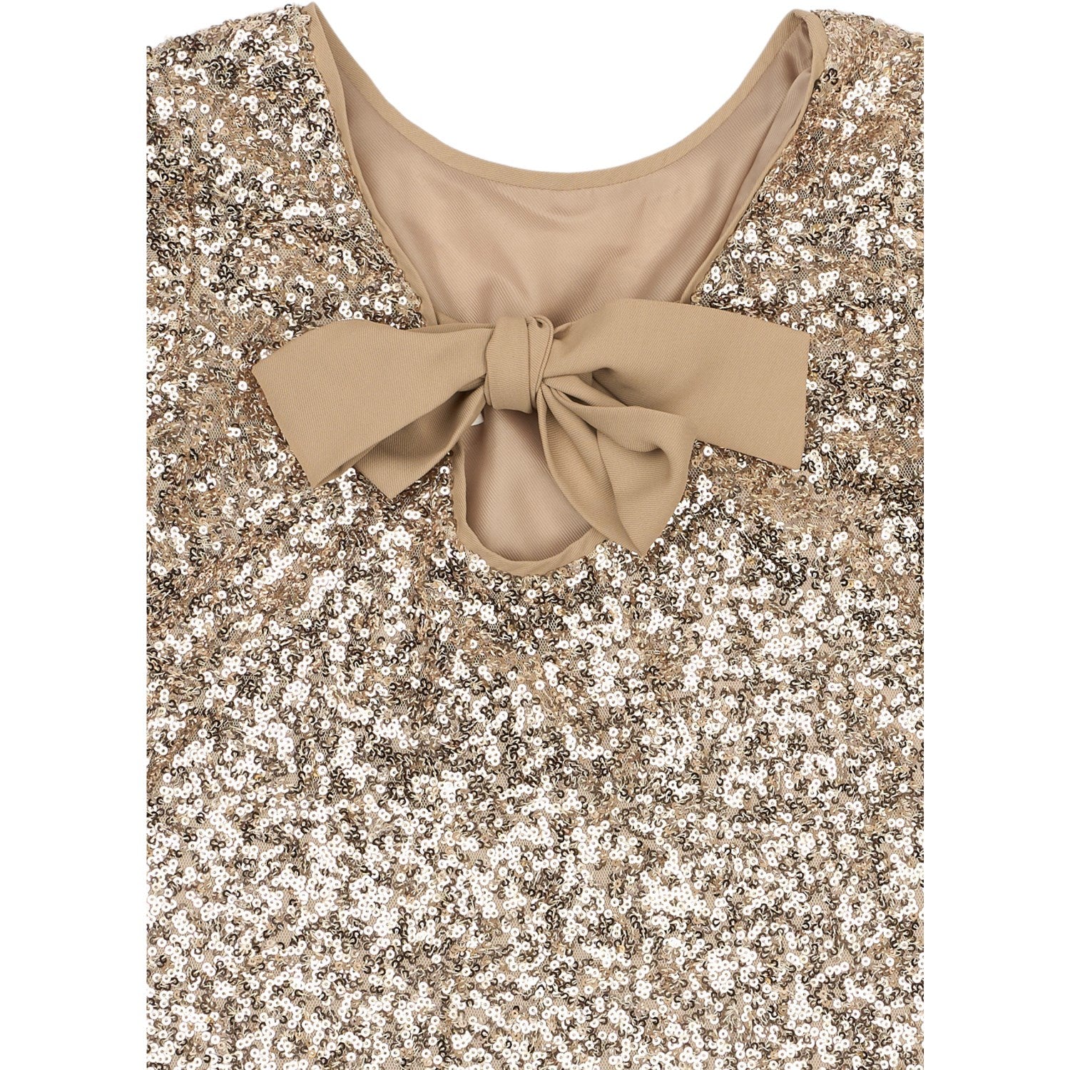 Oppdag en blendende gullfarget paljett-topp fra THE NEW, skreddersydd for livets festlige øyeblikk. Denne toppen fremhever en luftig, lett A-formet stil som sikrer komfort, mens de skinnende paljettene tilføyer en strålende glans til ethvert antrekk. Med korte ermer som gir en flatterende volumfølelse og en unik åpen rygg med en sjarmerende sløyfe, er denne toppen både elegant og funksjonell. Den er ideell for spesielle anledninger hvor stil og komfort går hånd i hånd.
