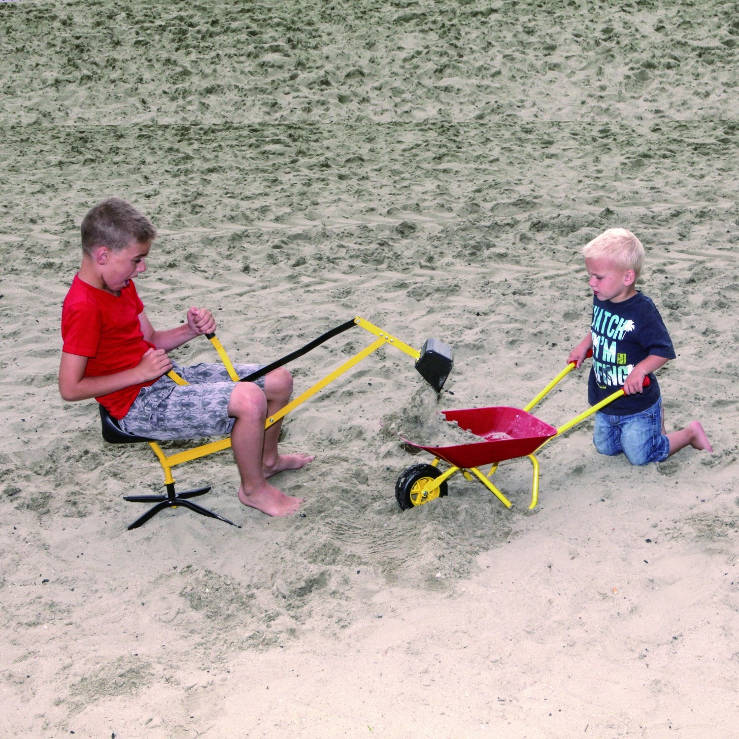 Oppdag gleden med vår Happy Summer Stor Gravemaskine, perfekt for små byggmestere! Denne robuste metallgraveren med sete og håndtak gir ikke bare underholdning, men også en sikker lekeopplevelse på stranden eller i sandkassen. Ideell for barn fra 3 år, fremmer den interaktive leken og utviklingen av motoriske ferdigheter. Enkel å bruke, lett å flytte og lagre, er dette det ultimate tilskuddet til ethvert utendørs lekeområde. Ekstra: Sett deg ned for å grave i sandkassen.
