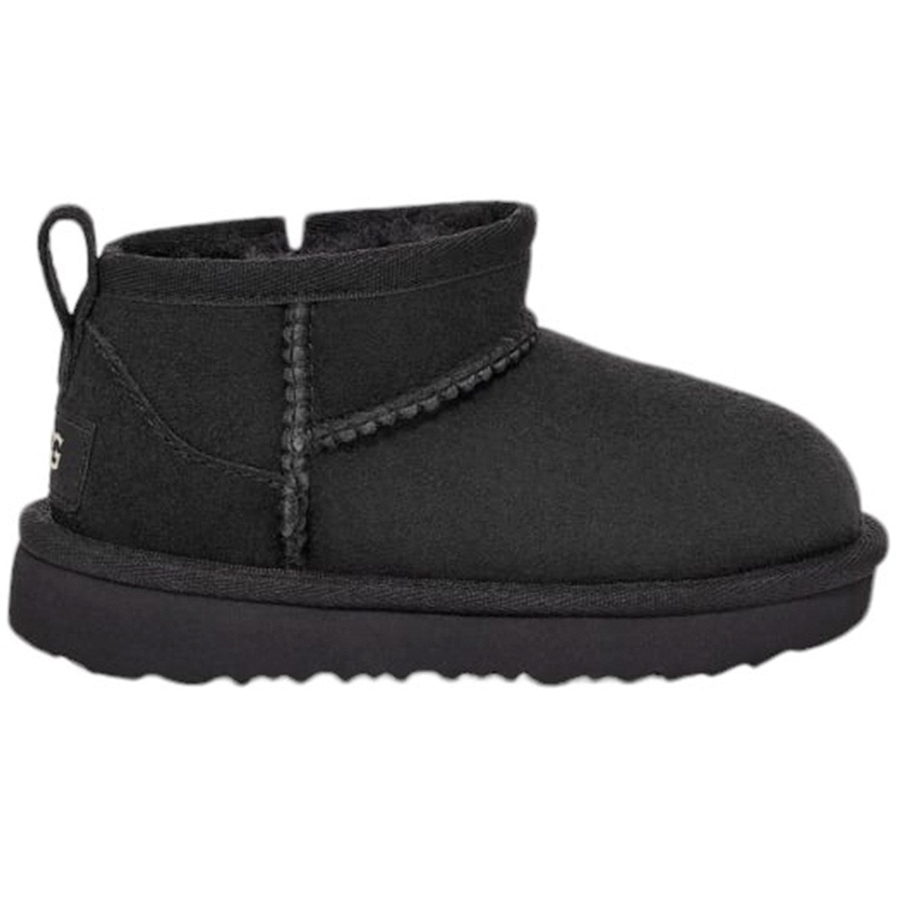 Disse T Classic Ultra Mini-støvlettene fra UGG er perfekte for små eventyrere! Laget i mykt, svart skinn og med en slitesterk såle, er disse skoene designet for å holde små føtter varme og komfortable gjennom alle slags leker. Den lave profile gir enkelhet i påkledning og gir barnet ditt stabiliteten de trenger for å løpe rundt hele dagen. Passer både til høstens brisk walks og mild vinterlek!