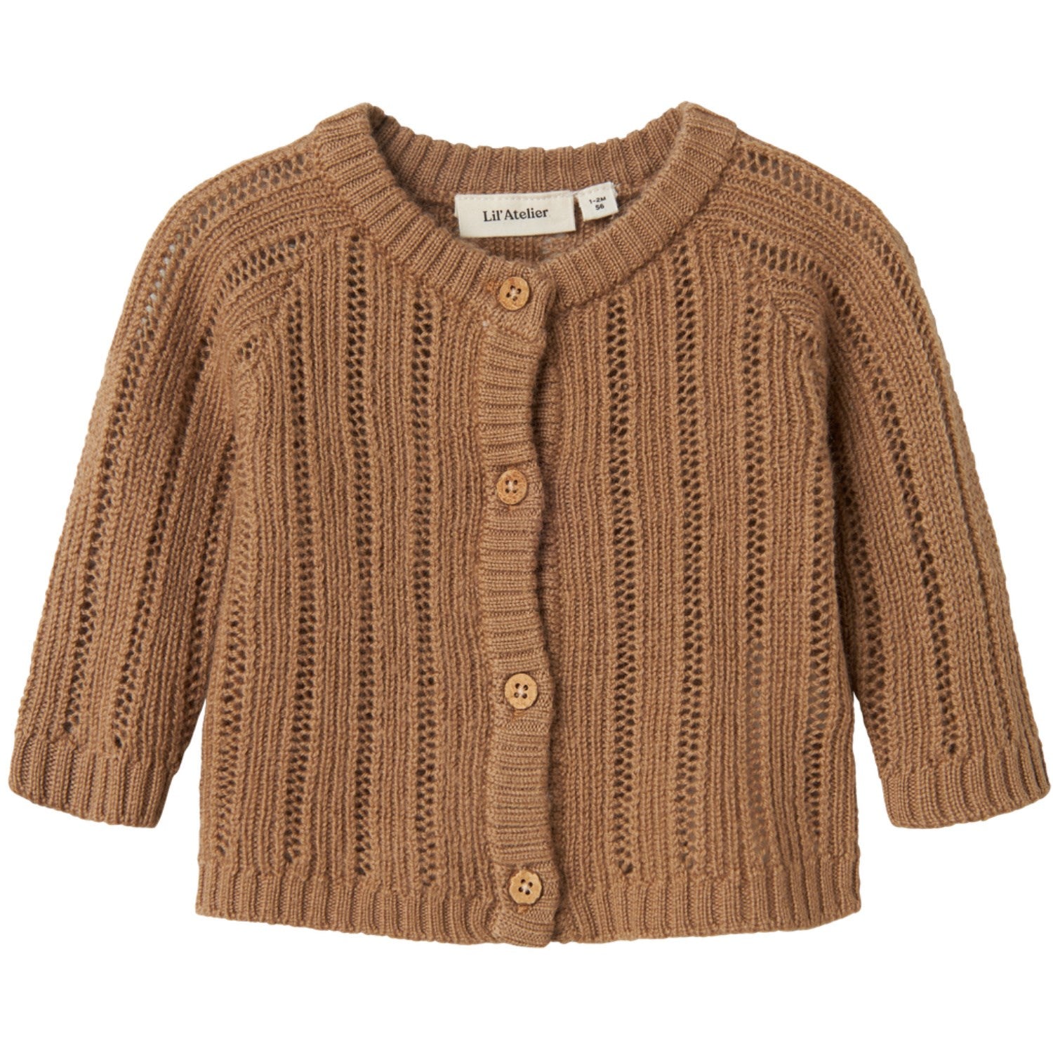 Denne cardiganen er ikke bare praktisk, men også utrolig stilig med sin tidløse design. Den vil enkelt kunne kombineres med ulike plagg i barnets garderobe, noe som gjør den til en allsidig og verdifull tilføyelse. Gi barnet ditt komforten det fortjener med Lil'Atelier cardiganen, samtidig som du tilfører et snev av eleganse til hverdagsantrekkene.