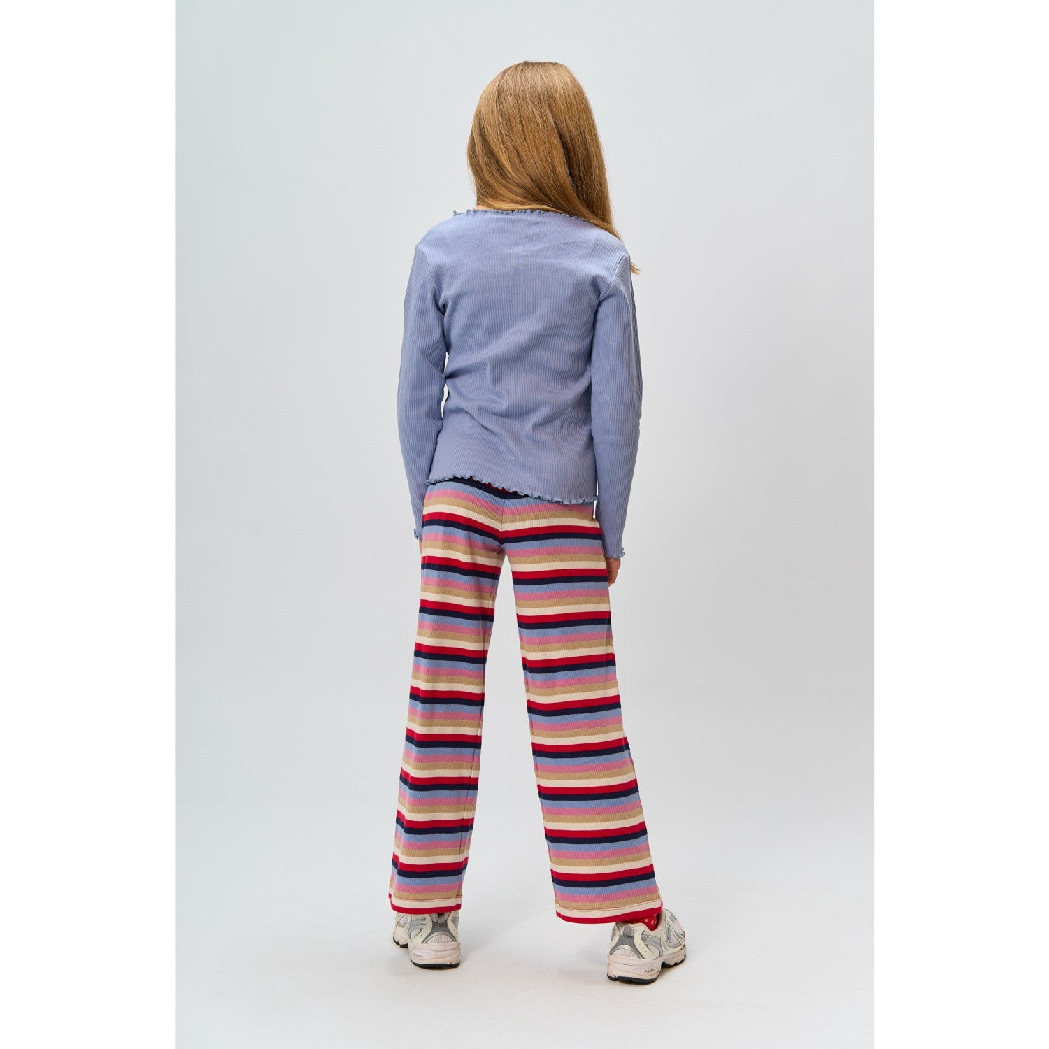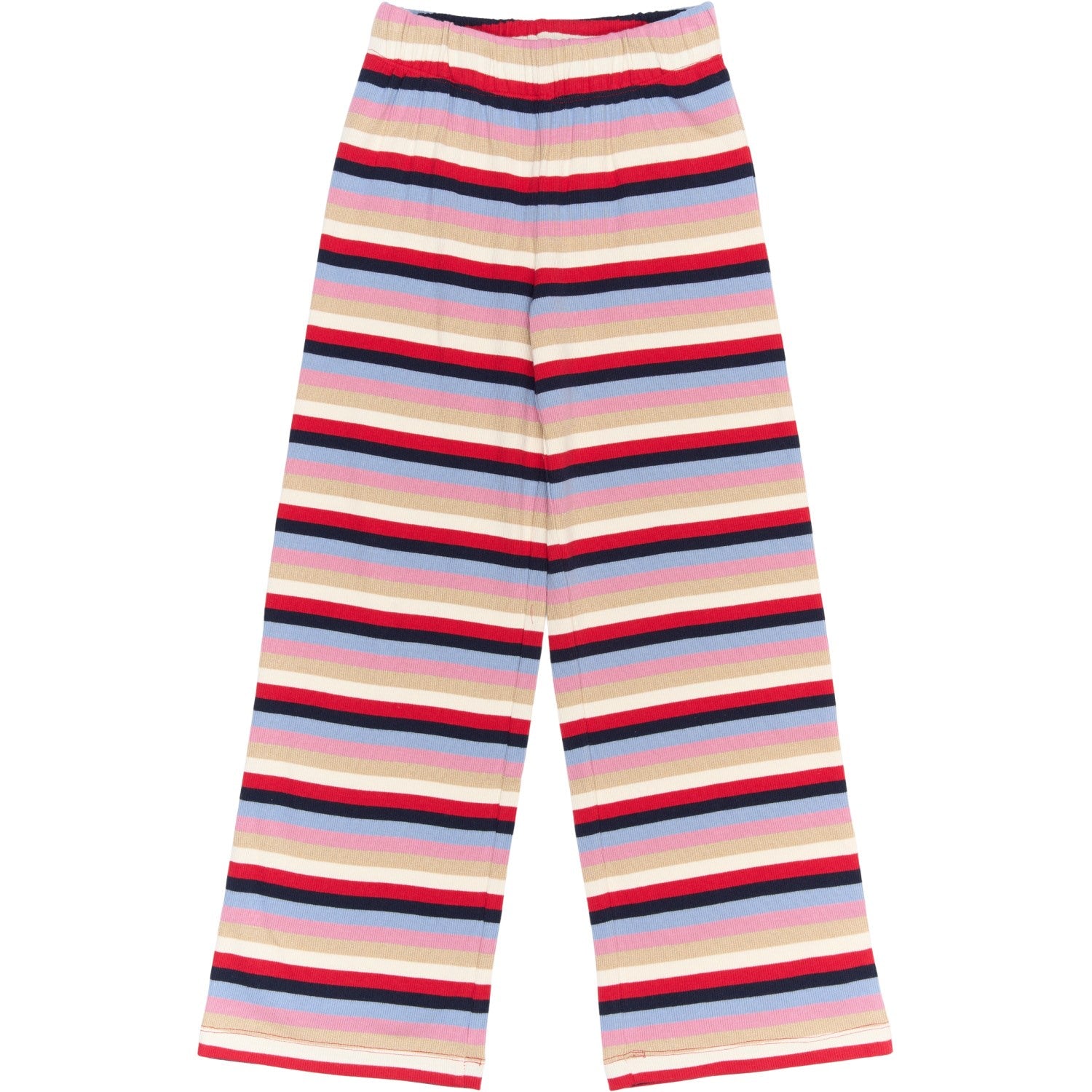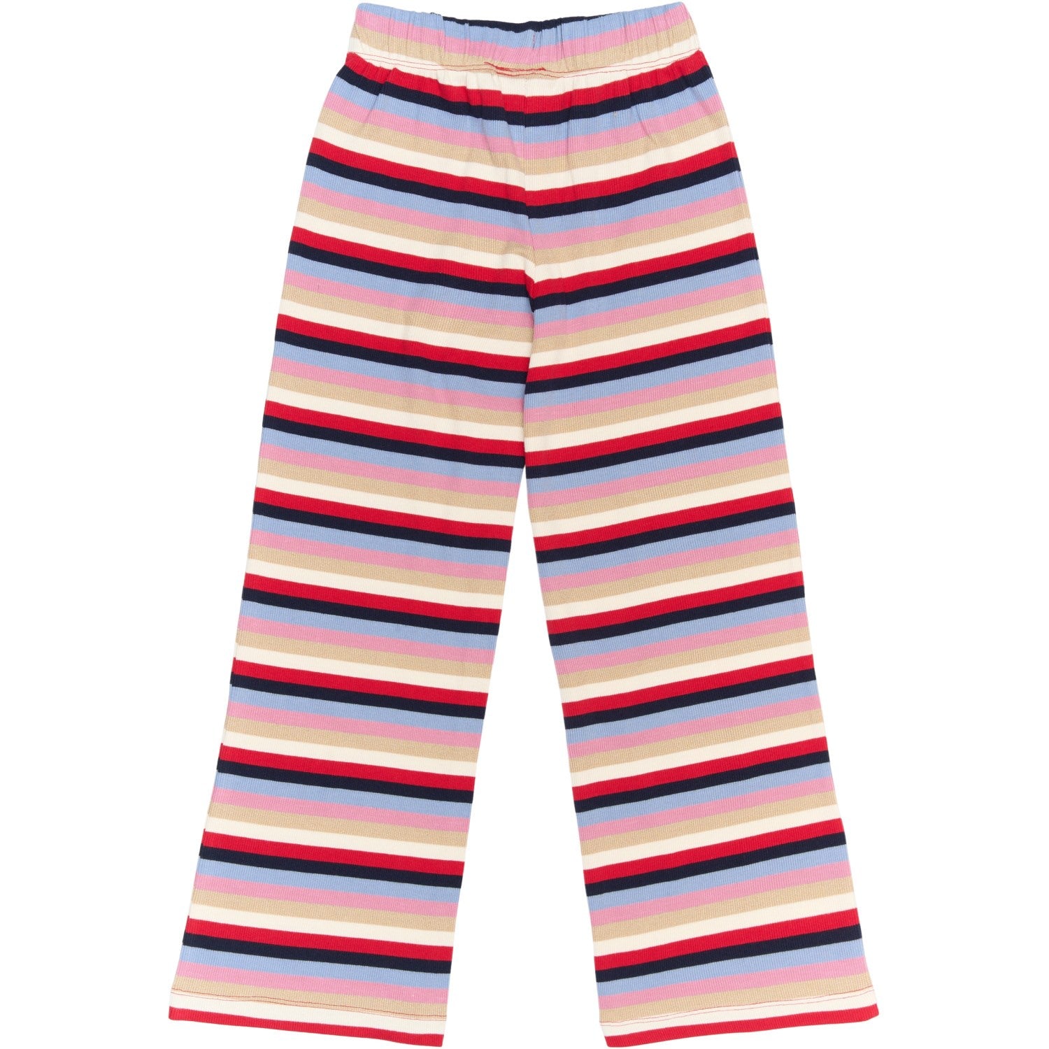 Oppdag de sjarmerende Multi Striped Rosie Wide Rib Bukser fra THE NEW, perfekt for enhver leken anledning. Denne behagelige buksen er laget med et mykt, ribbestrikket materiale som sikrer komfort hele dagen. Med horisontale striper i flotte farger og varierende tykkelser, tilbyr den et iøynefallende design. Den brede, elastiske linningen sikrer at buksen sitter godt, mens det vide benet gir optimal bevegelsesfrihet. Ideell for hverdagsbruk eller til å dress opp med en stilig topp for spesielle sammenkomster. Kombinér med TNRosie ribbet-t-skjorte for et komplett, stilig sett. Enkelt å vedlikeholde og ypperlig for aktive barn.