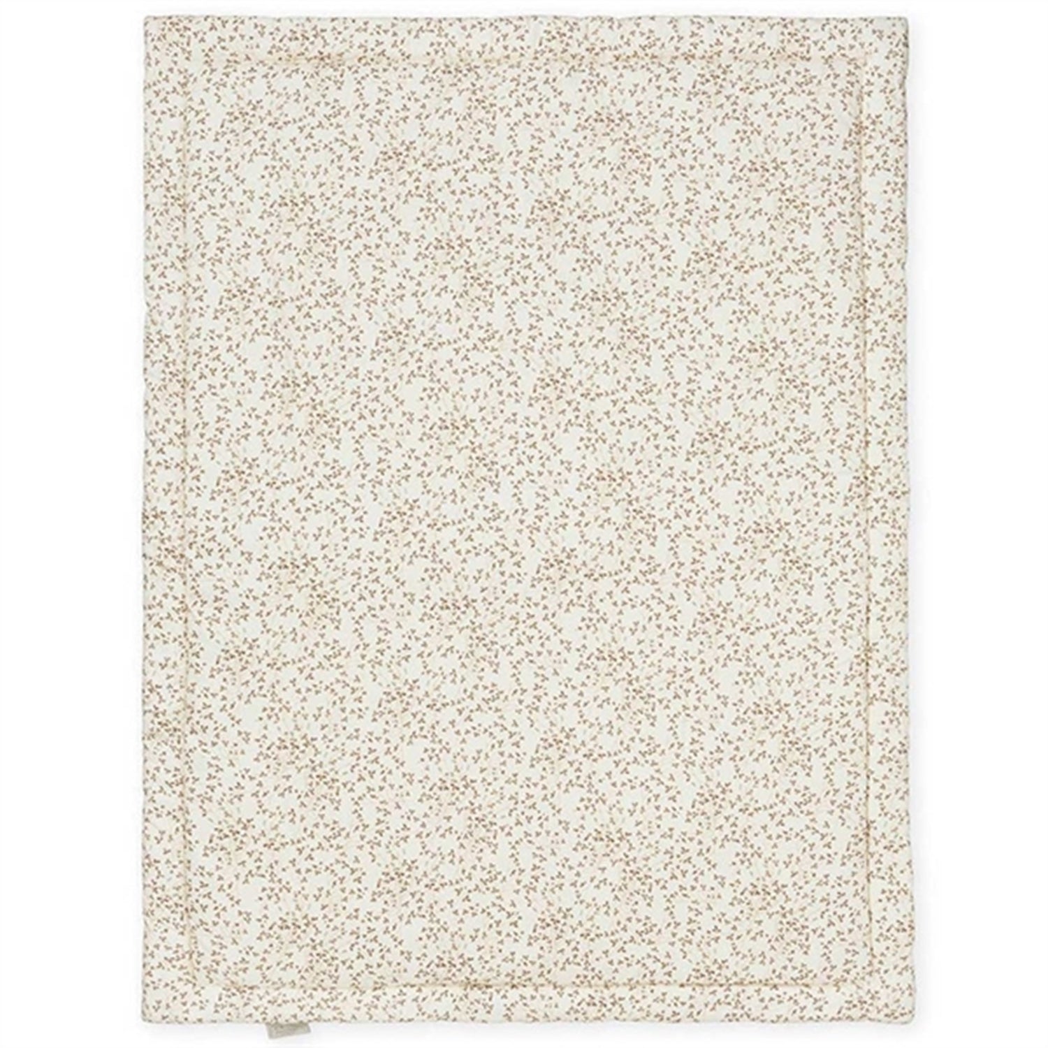 Mykt og lett babybomullsteppe i hvit farge med blomstertrykk.