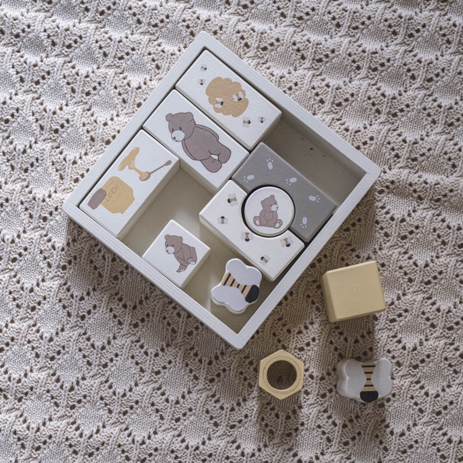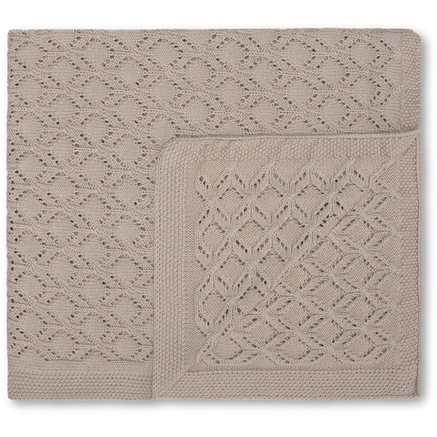 Teppet er sertifisert for å møte strenge sikkerhetskrav, og den strikkede designen legger til en ekstra dimensjon av komfort og varme. Med en størrelse på 85x85 cm, gir det rikelig dekning for å vikle inn og berolige barnet, samtidig som det er lett å håndtere og vedlikeholde.