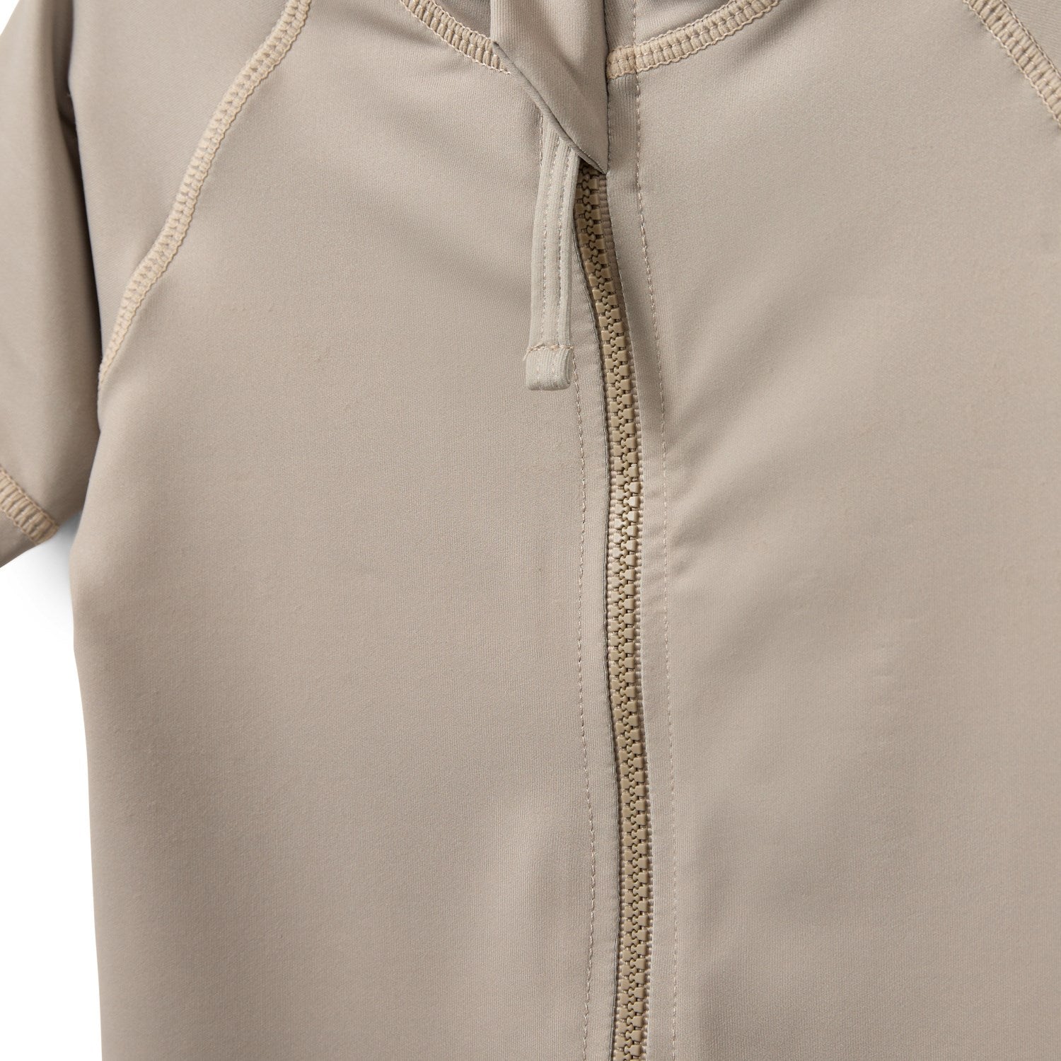 Dykk ned i lek og vannmoro med denne sjarmerende beige badedrakten fra Sofie Schnoor! Perfekt for solfylte dager på stranden eller ved bassenget. Denne drakten har praktiske korte ermer og en smart glidelås foran som gjør den enkel å ta av og på. Med sitt materiale av 82 % resirkulert polyester og 18 % spandex garanterer den ikke bare stor bevegelsesfrihet, men også en miljøvennlig tilnærming til mote. En ideell følgesvenn for enhver vannelskende liten eventyrer!