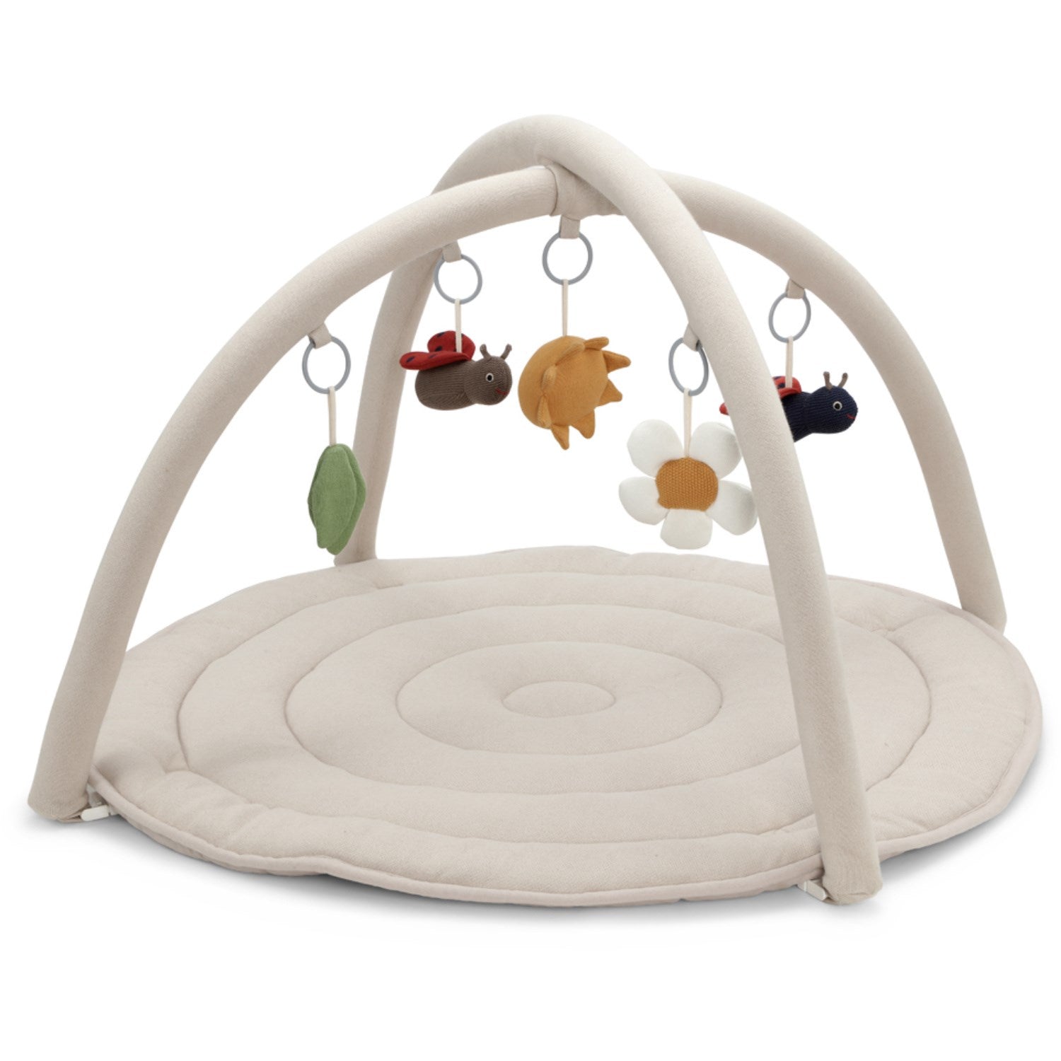 Oppdag gleden og læringen med Vanilla Copenhagen Aktivitetslekematte, perfekt utformet for å vekke nysgjerrigheten og utviklingen hos de minste. Denne interaktive matten er fylt med kosedyr i ulike høyder som engasjerer ditt barn i aktiv lek, fremmer motoriske ferdigheter og koordinasjon ved å utforske og gripe. Matten er laget av 100% økologisk bomull med fyll av resirkulerte polyesterfibre, og måler 90 x 90 cm, sikker for barn fra fødselen av og oppover, da den er CE EN71-3-sertifisert. De mangfoldige teksturene og de lydlige effektene som speil, knitrende og bjellelyder stimulerer flere sanser og oppmuntrer til timesvis med utforsking. Lett å bære, lagre og vedlikeholde, denne aktivitetsmatte garanterer sikker og stimulerende lek hver dag.