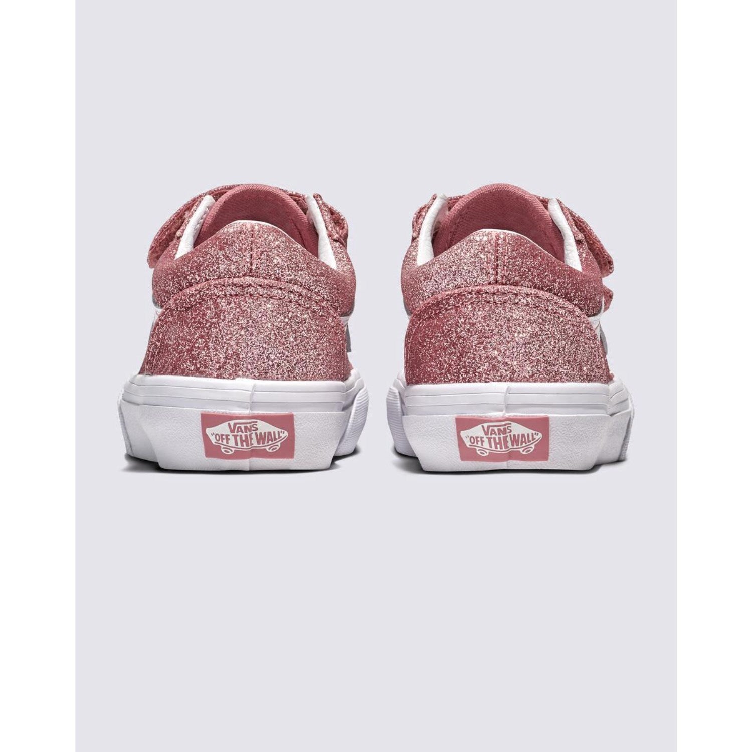Gi barnas hverdag et sprudlende løft med VANS Rose Gold Old Skool V Glitter sneakers! Disse skoene er laget med en blendende glitterfinish i rosengull, noe som gir et stilfullt preg enhver barnegarderobe trenger. Med praktiske borrelåsremmer er de enkle å ta på og av, ideelle for små som alltid er i bevegelse. Komforten er topp med en myk, polstret såle og fleksibel passform som tilpasser seg små, aktive føtter. Tåler daglig bruk med sitt holdbare materiale, og rengjøres enkelt med en fuktig klut. VANS er kjent for sin kvalitet og disse sneakersene fortsetter å levere både mote og funksjon til lekne barn.