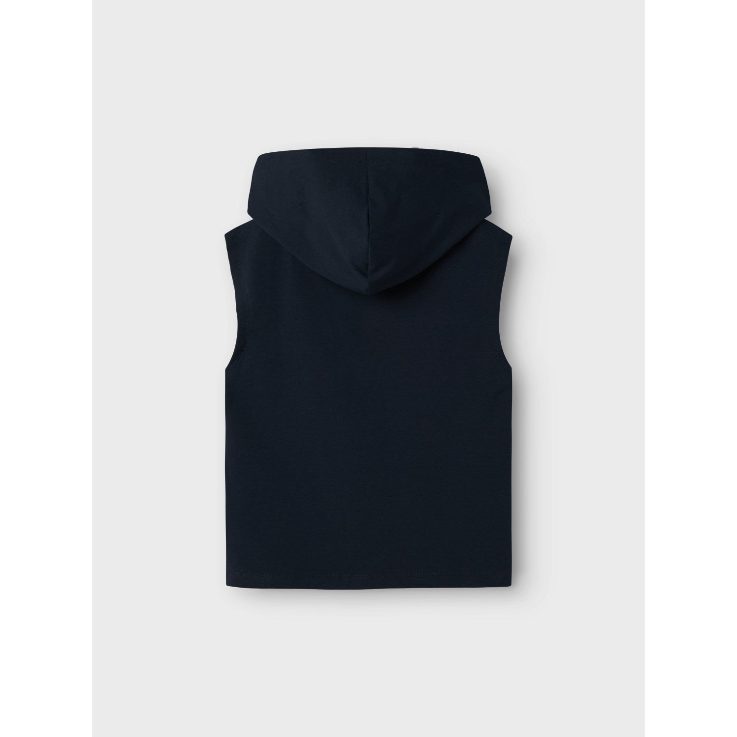 Vestens marineblå farge og stilige design gjør den lett å kombinere med andre plagg, mens den ermeløse snittet og hettegenseren tilbyr en kul og casual look. Med sin normale passform, er denne tanktoppen designet for å passe perfekt uten å hemme barnets bevegelser. Dessuten er den lettstelt og holder seg fin vask etter vask.
