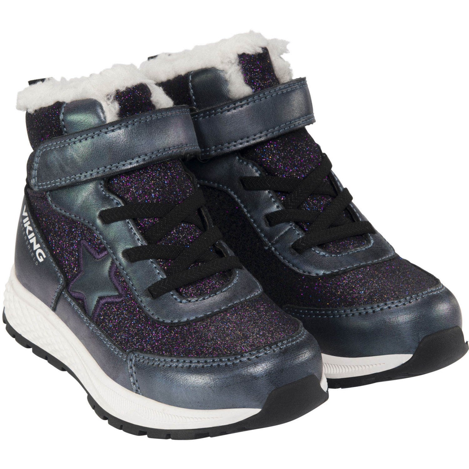 Oppdag gleden ved vintersesongen med Vikings Black Equip Star Warm WP 1V SL vintersko – barnas favoritt for kalde dager! Med en blendende glitrende og iriserende overdel kombinert med praktiske elastiske lisser og borrelåslukking, tilbyr denne skoen en balanse mellom stil og brukervennlighet. Det unike Watershield-membranet fra Viking sikrer at små føtter holder seg tørre, mens det tykke isolerende laget beskytter mot kulden. Den robuste gummisålen gir optimalt grep for alle typer lek, og den enkle fotstroppåpningen gjør skoen ideell til daglig bruk. La barnet ditt utforske vinteren med stil og komfort med denne stilsikre og funksjonelle vinterskoen.