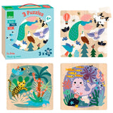 Vilac Puslespil 3x16 Brikker I Luften i Vandet Og På Jorden