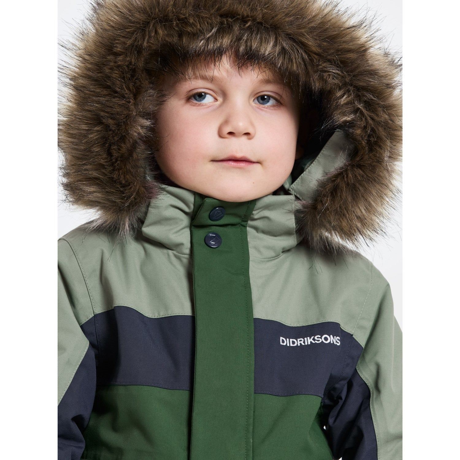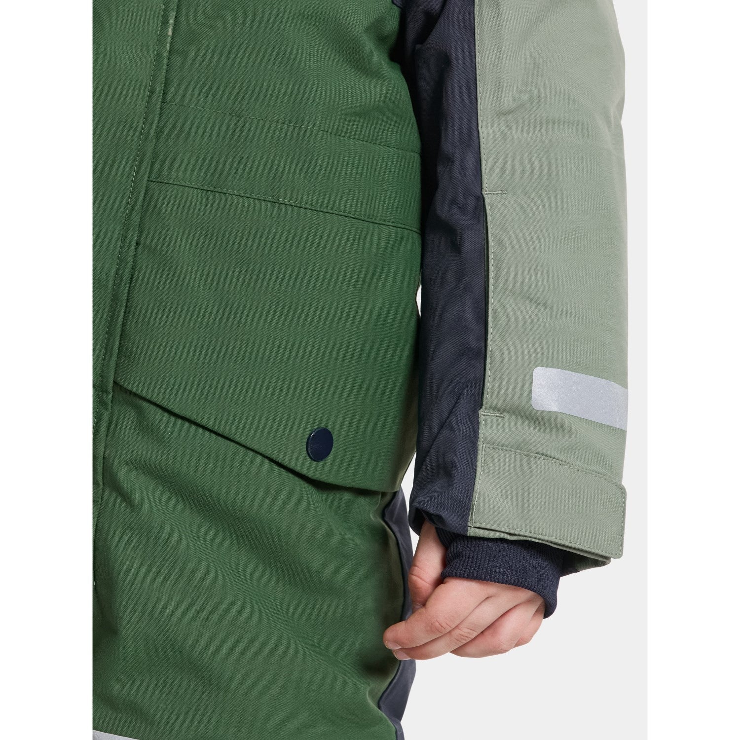 La barna leke ute uansett vær med Didriksons Light Moss Bjärven Kds Cover 4, en vinterdress designet for maksimal komfort og funksjonalitet. Dette plagget er laget med en innovativ stoffkartlegging for økt holdbarhet og har en rekke tilpasningsmuligheter som avtakbar hette med avtakbar syntetisk pels, justerbare benender med anti-skli snøgamasje og elastiske mansjetter med tommelhull. Justerbare midjer og forlengelsesmuligheter på satte og ermer sikrer at dressen vokser med barnet. Bekvemmelighet er også tenkt på med en kleshenger på innsiden for enkel tørking, navneetikett og flere reflekterende detaljer for økt sikkerhet i mørket. Denne allsidige vinterdressen er en essensiell del av ethvert barns garderobe for kalde dager.