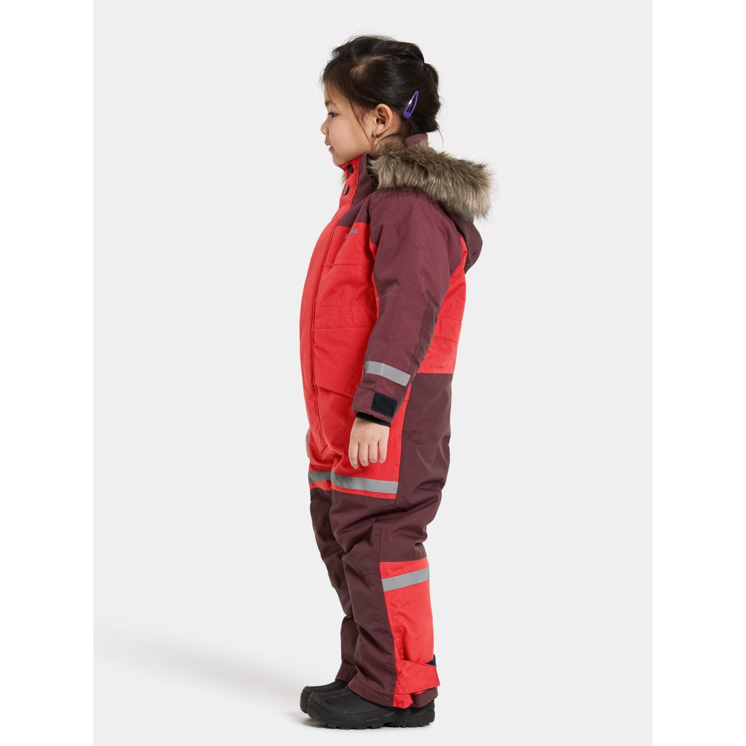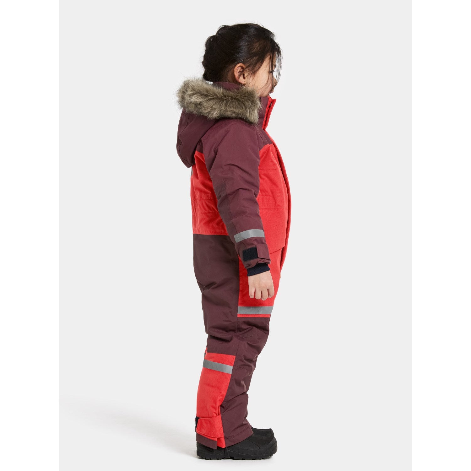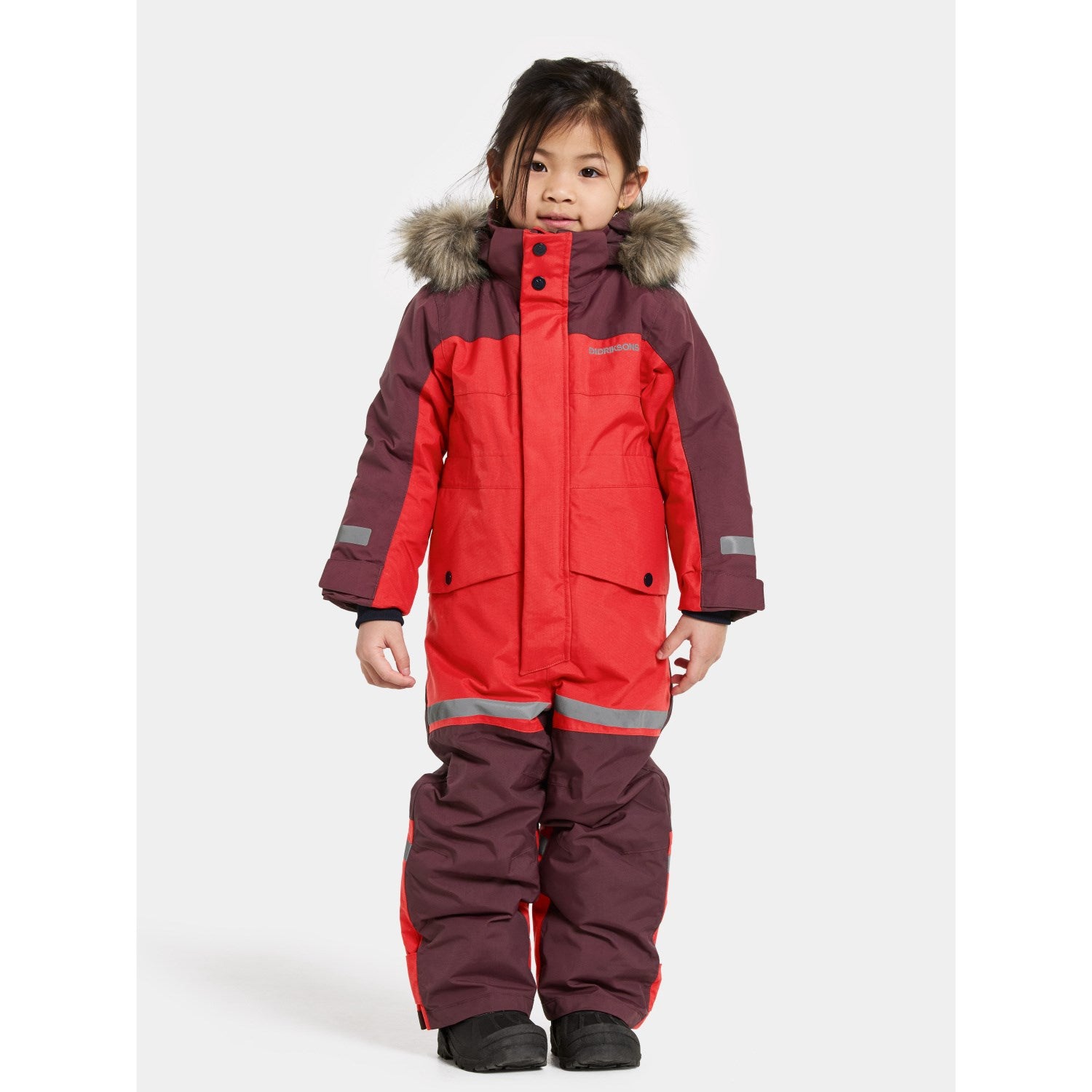 Gled barna med Didriksons Pomme Red Bjärven Kds Cover 4, en robust og stilfull vinterdress perfekt for kalde dager. Denne dressen er designet med tanke på komfort og funksjonalitet, med avtakbar justerbar hette og syntetisk pels. Den har smarte justeringer ved ben og ermer, inkludert fotstropper i silikon og snøgamasjer, som sikrer god passform og holder snøen ute. Pustende stoff med navneetikett og kleshenger på innsiden for enkel tørking gjør dette til et praktisk valg. Reflekterende detaljer sørger for synlighet i mørket. Didriksons' kjente kvalitet og omtanke for detaljer gjør denne vinterdressen til et trygt valg for vinterlek.