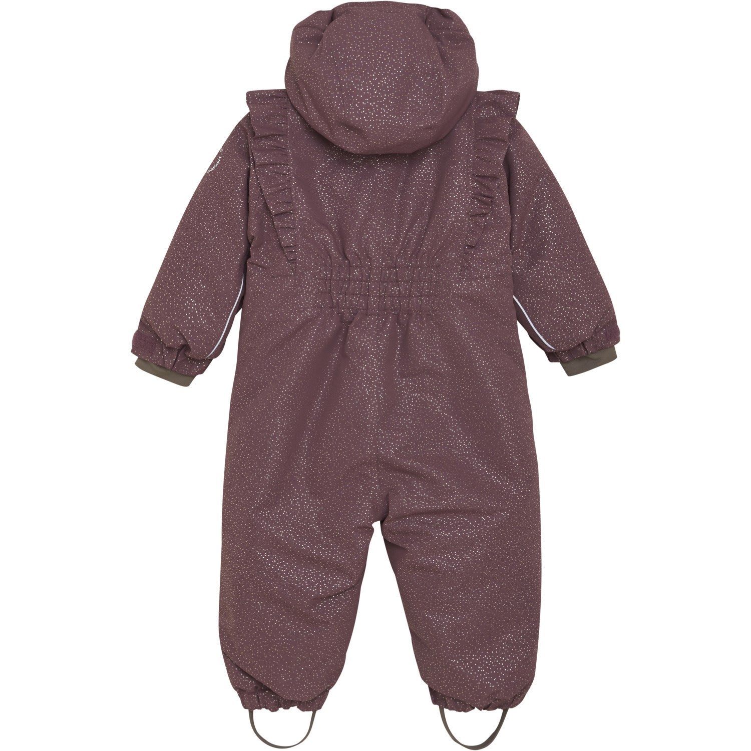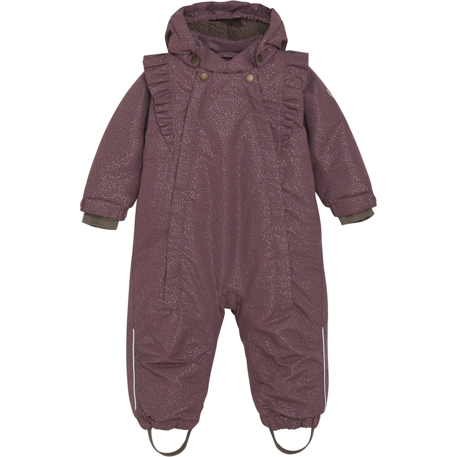 Den sjarmerende rosa taupefargen og de dekorative volangene gir plagget et lekent og stilig utseende som passer perfekt i vintermiljøet. Med størrelser designet for å passe komfortabelt til barn i voksealder, sikrer dressen god bevegelsesfrihet samtidig som den gir nødvendig varme.