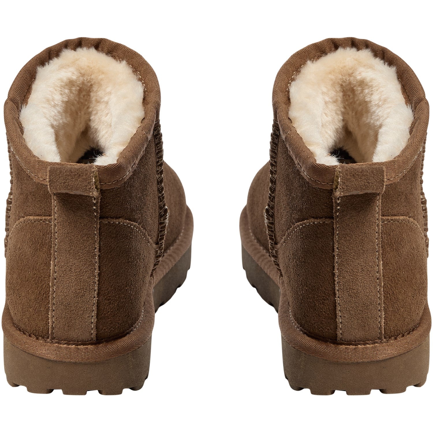 - Ekstra: • Vannavvisende støvler. • Laget av 100 % semsket skinn, tekstil og gummi. • Støvlene har et varmt fôr i ull og fuskepels, en solid gummisåle og en trekkflik bak for enkel påkledning. • De er designet for å holde føttene varme og tørre under forskjellige værforhold.