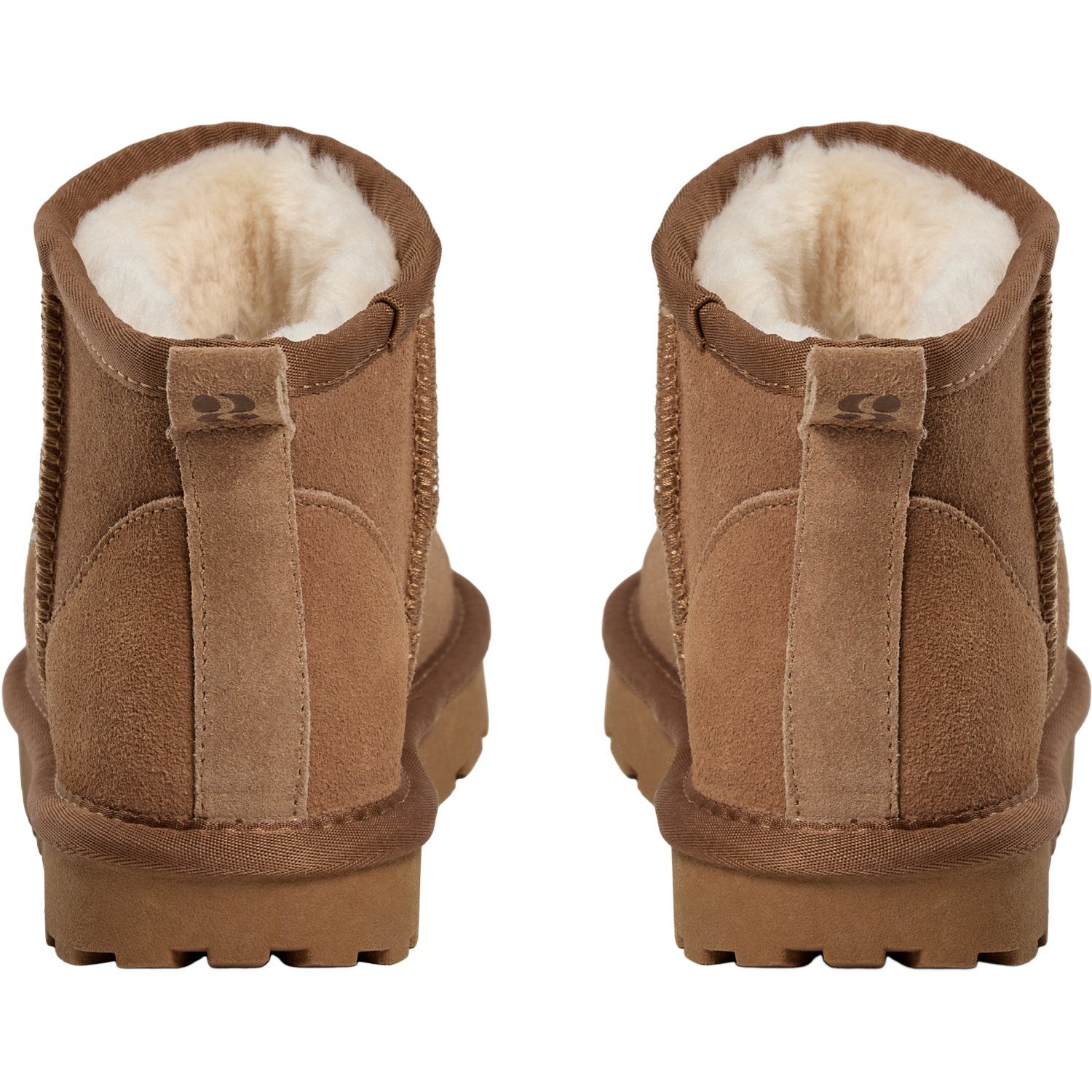 • Ekstra: • Vannavvisende støvler. • Laget av 100 % semsket skinn, tekstil og gummi. • Støvlene har et varmt fôr i ull og fuskepels, en solid gummisåle og en trekkflik bak for enkel påkledning. • De er designet for å holde føttene varme og tørre under forskjellige værforhold.