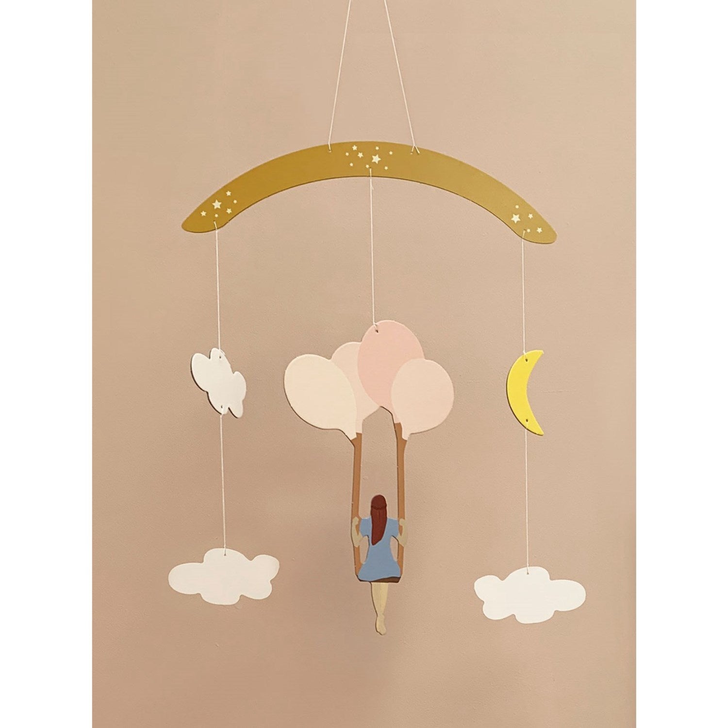 Opplev magien til BALLOON DREAM - Mobiles fra ViSSEVASSE, designet for å berolige og dekorere på hvert barnerom. Denne mobilen forener estetikk med funksjonalitet, da den ikke bare er en fryd for øyet, men også stimulerer små barns sanser og romforståelse. Den er laget av FSC-sertifisert® materiale og sikrer høy holdbarhet og sikkerhet for barnet ditt. Med det enkle monteringssystemet kan du raskt "poppe" ut elementene og montere mobilen, noe som gjør den både enkel å bruke og oppbevare. De myke bevegelsene og de sjarmerende luftballongfigurene inviterer til ro og fascinasjon, noe som gjør den ideell over stellebordet eller sengen. Målene på mobilen er 37 x 30 cm, og den inviterer til uendelig glede og ro i det lille hjemmet.