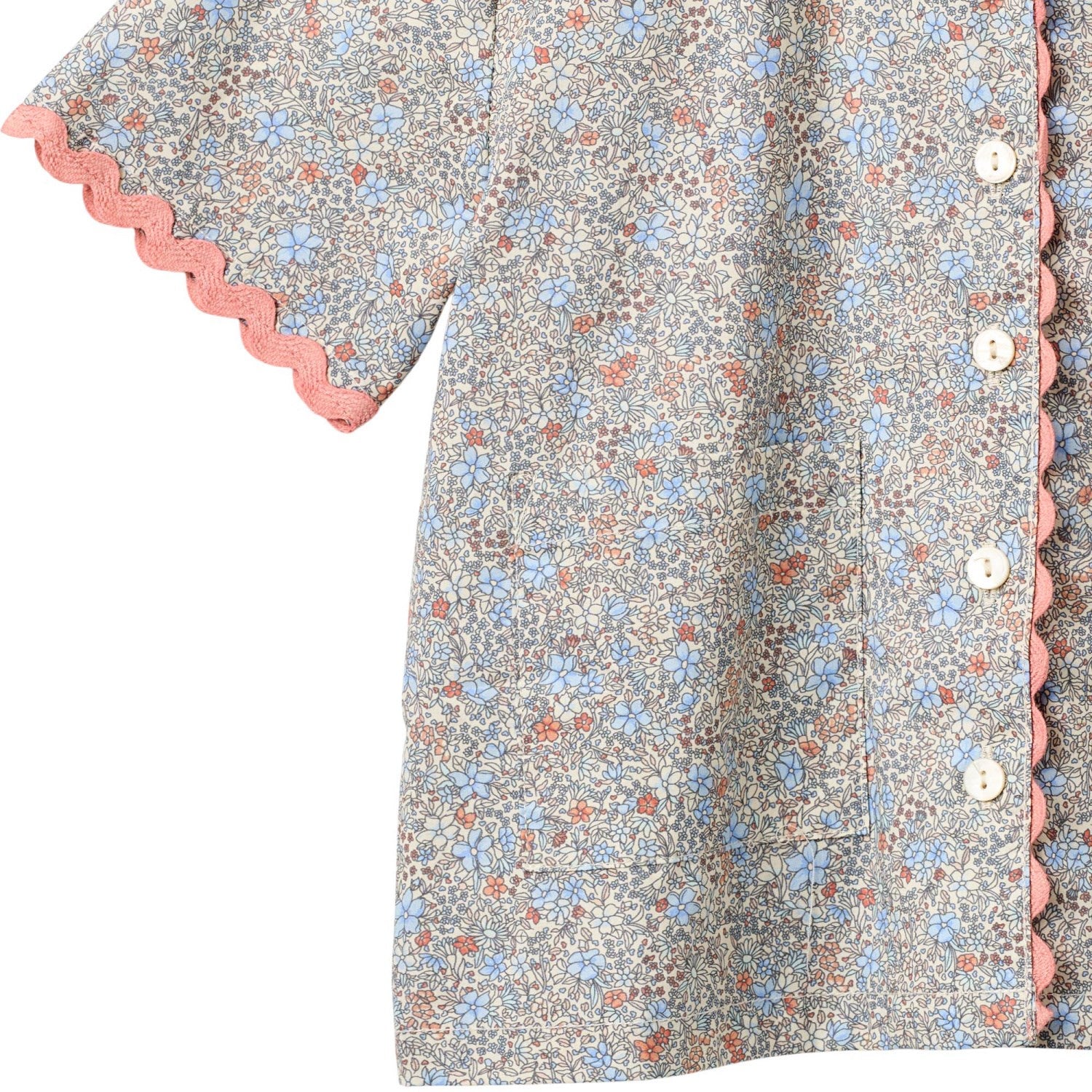 Skjorten er designet med en løs passform og en behagelig pysjamaskrage, som sammen med sikksakk-blonde detaljer ved krage- og ermekantene tilfører et klassisk preg. Den praktiske knappestolpen foran og lapplommene med trekantsøm ikke bare ser bra ut, men er også funksjonelt tenkt for små hender.