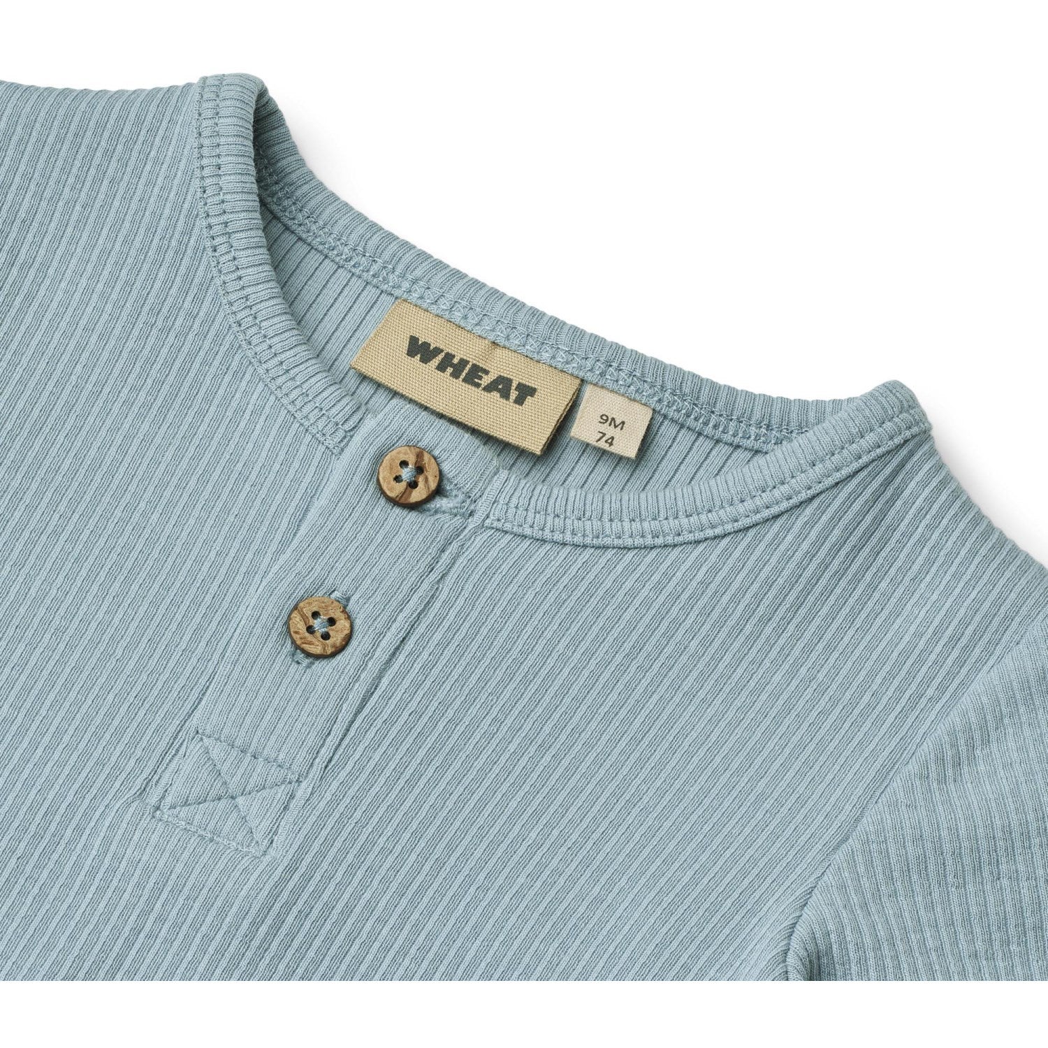 Kle den lille i Wheat Calm Blue Body L/S Benny, en superkoselig stift for enhver babys garderobe. Denne langermede bodyen er laget av GOTS-sertifisert økologisk bomull med et hint av elastan, og sikrer en tettsittende, men likevel komfortabel passform. Den har en sjarmerende ribbestrikket struktur med en stolpe foran og to enkle knappelukkinger, og er designet for enkel påkledning og raske bleieskift takket være de praktiske trykknappene i skrittet. Denne unisex-bodyen er ideell for å ha på seg alene eller lagvis under hverdagsantrekk, og er like praktisk som den er bedårende. Den er trygg for sensitiv hud, og oppfyller den strenge Standard 100 by OEKO-TEX.®