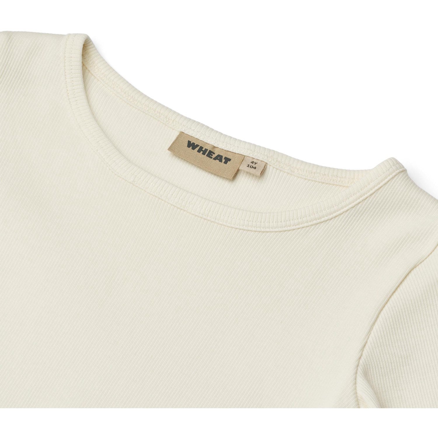 Oppdag komforten og stilen med Wheat Ivory Bluse Ida, en langermet ribbestrikket T-skjorte perfekt for barnas hverdagsbruk. Dette plagget er laget av 95% økologisk bomull og 5% elastan, noe som sikrer både fleksibilitet og mykhet. Blusen har en flatterende, figursydd form med strekkbar stoff som gir god bevegelsesfrihet. Den runde halsen er detaljert med myk ribbestrikk, og overlockede kanter på mansjettene og falden legger til en fin finish.