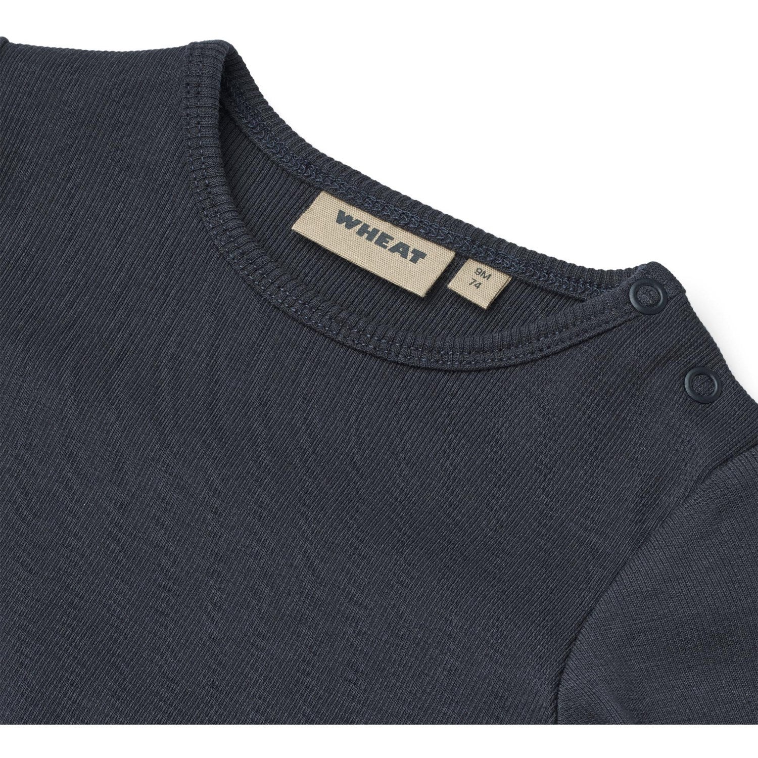 Wheat's Navy Rib Body er designet for å være unisex, noe som gjør den til et perfekt plagg som kan gjenbrukes mellom søsken. Den er ideell for bruk alene på varmere dager eller som et behagelig ekstra lag under andre klær. Et pålitelig valg for ditt barns komfort og din fred i sinnet.