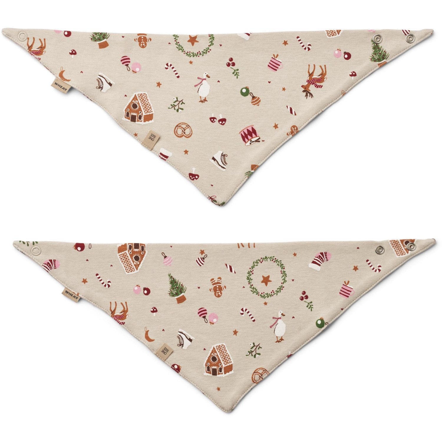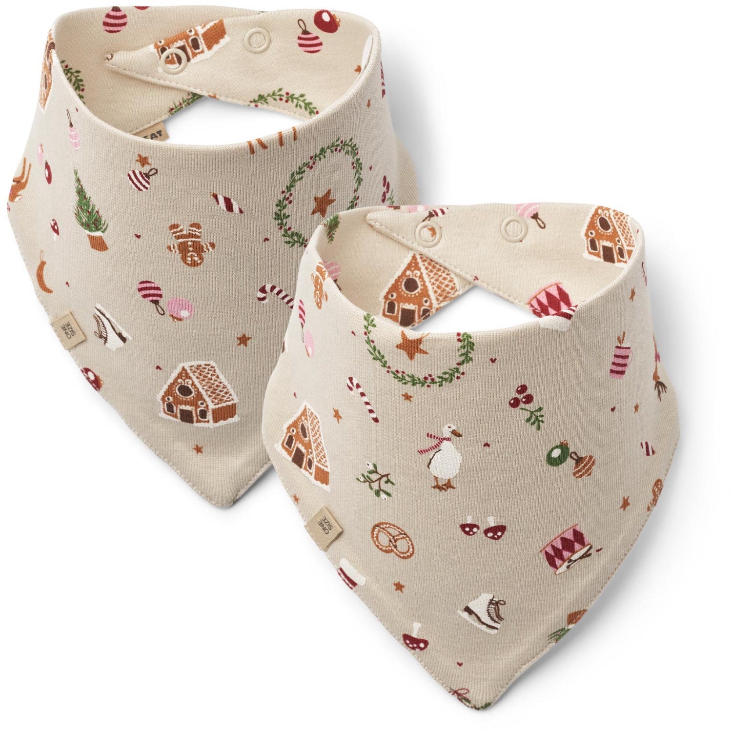 Wheat-smekkene kommer i en nøytral off-white farge med pent innarbeidede julemotiver som gjør dem ideelle for både gutter og jenter. Med de justerbare trykknappene i nakken kan smekkene enkelt justeres etter hvert som babyen din vokser, noe som sikrer perfekt passform og komfort.