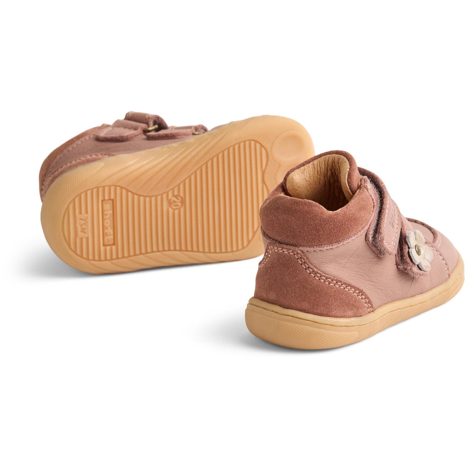 Opplev komforten og stilen til Wheat Old Rose Prewalker Barry nybegynnersko til barnet ditt. Disse sjarmerende støvlene er laget av LWG-sertifisert skinn og sikrer pusteevne og holdbarhet. Designet inkluderer en søt blomsterdekorasjon og semsket skinndetaljer, noe som gir den et unikt og attraktivt utseende. Skoene har doble borrelåslukkinger og en barbeint passform som gjør dem enkle å ta på og sikrer en nesten naturlig følelse når du har på dem. Det krom- og metallfrie skinnfôret øker skoens komfort, mens den fleksible yttersålen i gummi med ekstra tåbeskyttelse støtter barnets første skritt på en sikker måte. Med disse støvlene kan barnet ditt utforske verden med stil og komfort.