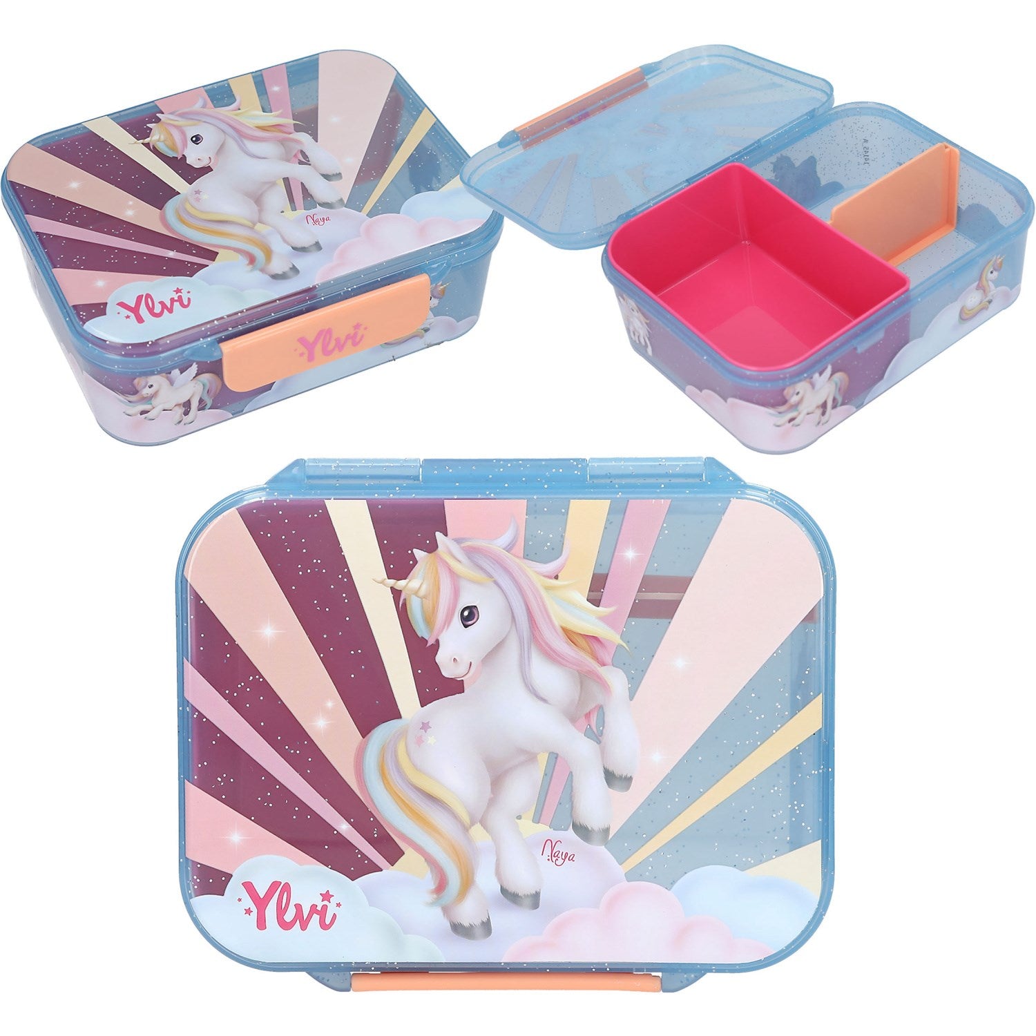 Gjør matpakken til en magisk opplevelse med Ylvi Sugar Pop Lunchbox! Denne sjarmerende matboksen er perfekt for små eventyrere, med sitt livlige enhjørningmotiv og glitrende detaljer. Designet for både funksjonalitet og stil, har den en unik, halvgjennomsiktig blå farge med glitterpartikler som lyser opp barnets måltidstid.
