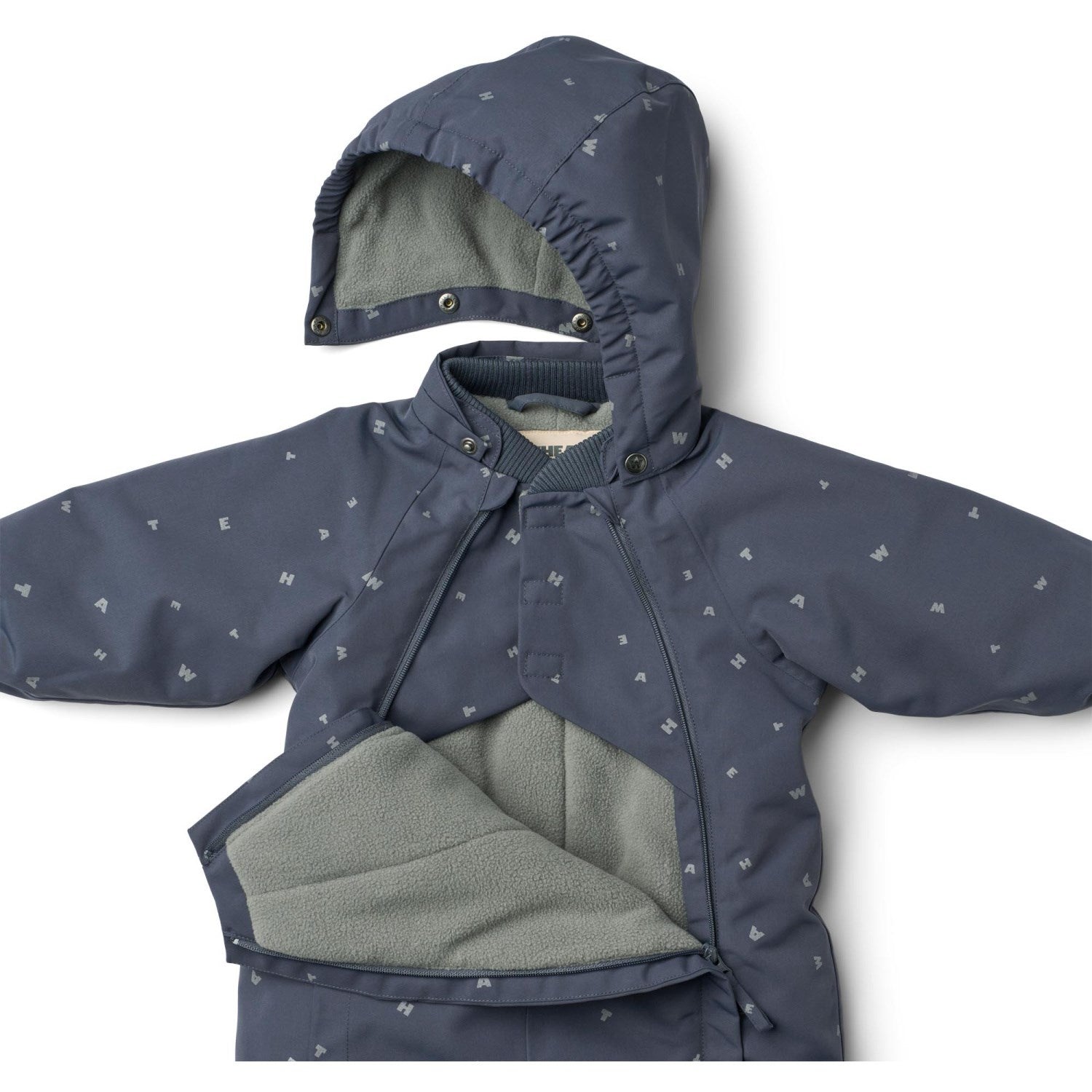Oppdag gleden av vinterleker med vår Wheat Greyblue Letters Flydress Adi, en komfortabel og robust vinterdress til de minste. Laget med et øye for både stil og funksjonalitet, denne dressen har et friskt design med lekne detaljer og en tiltalende gråblå farge.