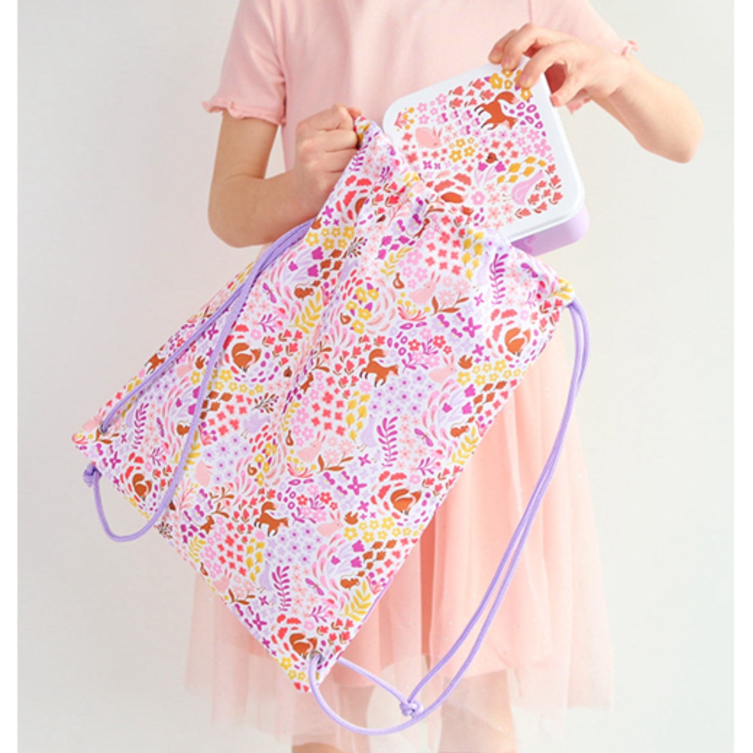 Oppdag den sjarmerende gymnastikksekken fra A Little Lovely Company, perfekt for barnets skolesport eller svømmetrening. Denne lette treningsbagen er designet med en praktisk snørelukking, noe som forenkler bruken for små hender. Med sitt tiltalende Flower Gardens-motiv, ikke bare organiserer den nødvendigheter, men stimulerer også barnets sanser og gir glede ved bruk. Den er ideell for daglig bruk og enkel å vedlikeholde, noe som gjør den til en favoritt blant både barn og foreldre.