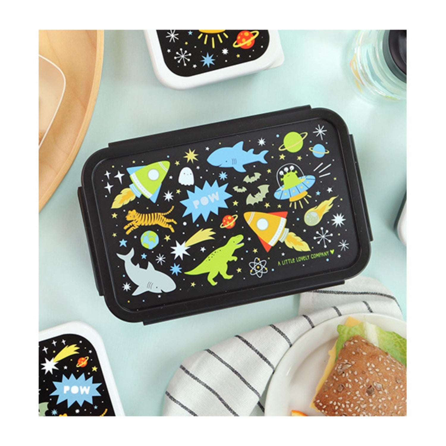 Gjør måltidene for barna både sikre og spennende med A Little Lovely Company Galaxy Bento Matboks! Denne matboksen er laget med tanke på barnas sikkerhet, godkjent og sertifisert for matlagring. Den er enkel å håndtere for små hender, komfortabel og allsidig, noe som gjør den perfekt til flere typer mat. Boksen tåler god bruk og er lett å vedlikeholde og rengjøre. Dens organiserte rom bidrar til å holde maten adskilt og stimulerer barnas interesse.
