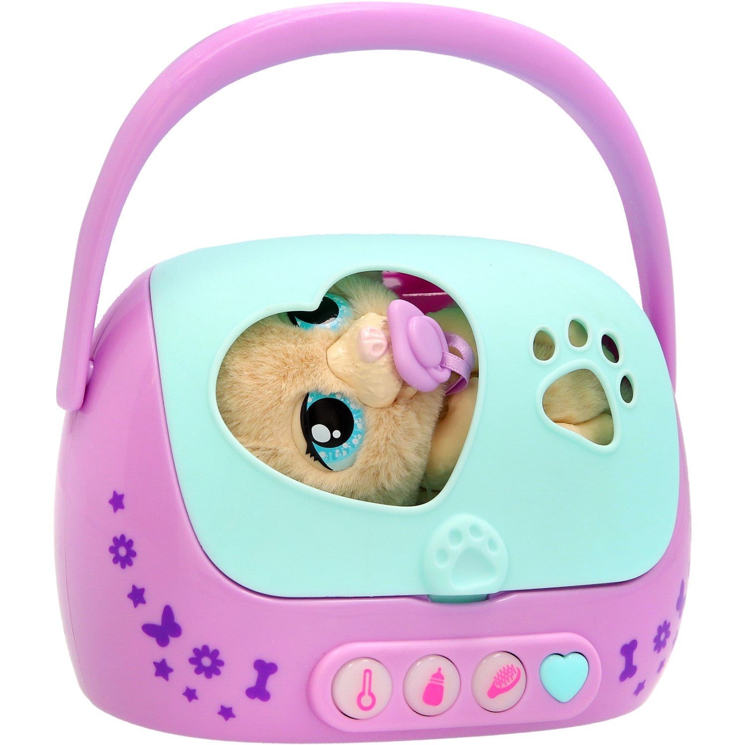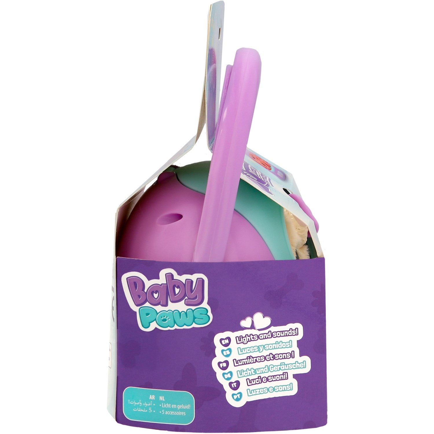 Oppdag den sjarmerende Baby Paws Just Born Hvalp! Dette interaktive elektroniske kjæledyret byr på trygg underholdning med sine innovative sikkerhetsfunksjoner. Egnet for barn fra 18 måneder, er det designet for å stimulere barnets utvikling gjennom lek. Med enkle trykknapper kan barnet selv lære å omsorg for sin hvalp, fra å mate den med flasken til å stelle pelsen med børsten. Hvalpen kan også tas med overalt i den medfølgende transportboksen, som sikrer enkel oppbevaring og portabilitet. Opplev gleden ved å se barnet ditt vokse og lære med Baby Paws Just Born Hvalp.