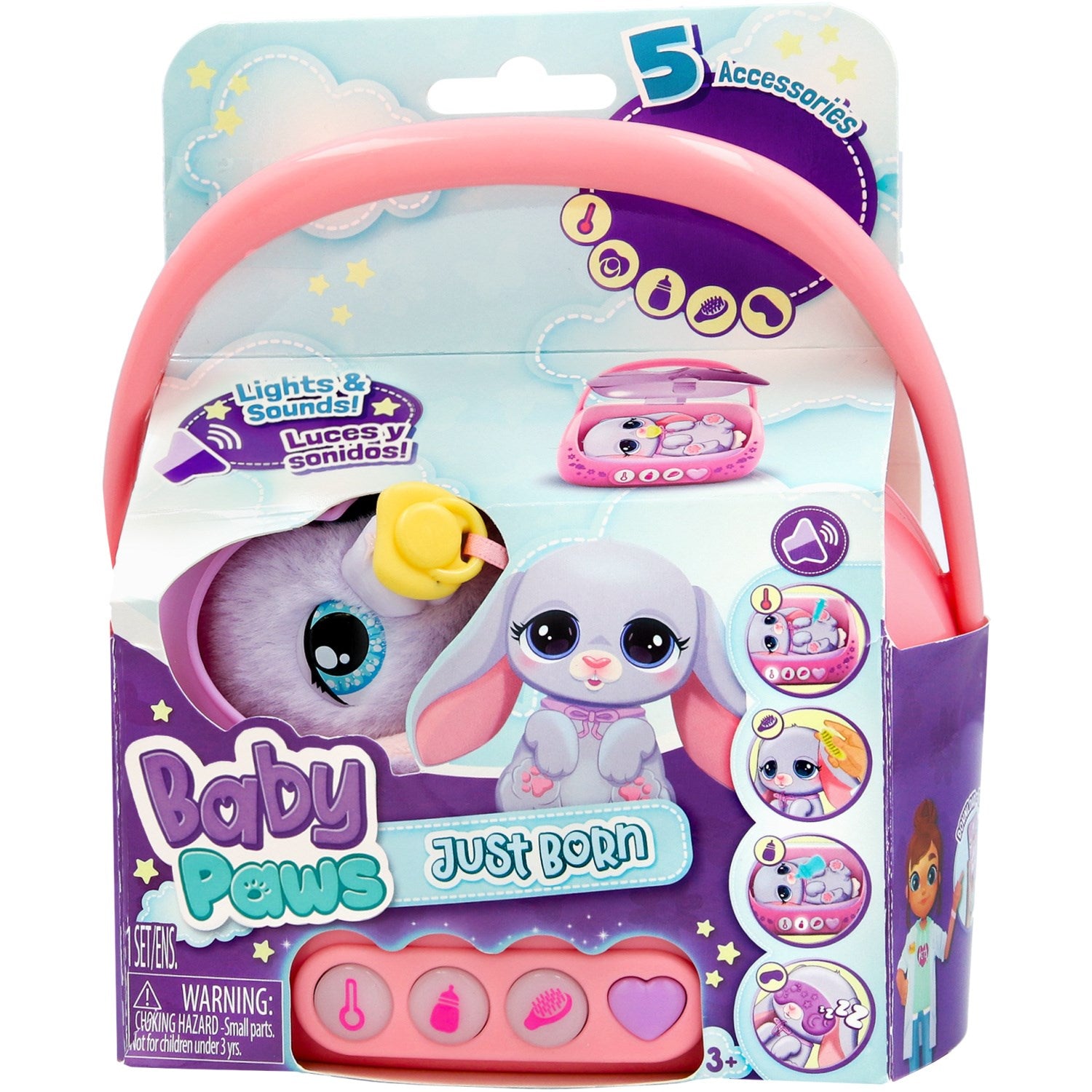 Oppdag den nye Baby Paws Just Born Kanin – en elektronisk og interaktiv leke som er designet med dine barns sikkerhet og læring i fokus. Denne bedårende kaninen inviterer barna til å utforske ansvar gjennom morsom lek. Med en hjerteknapp som lyser opp, lærer barna å identifisere og reagere på kaninens behov, enten det er tid for mat, medisin eller en koselig lur.