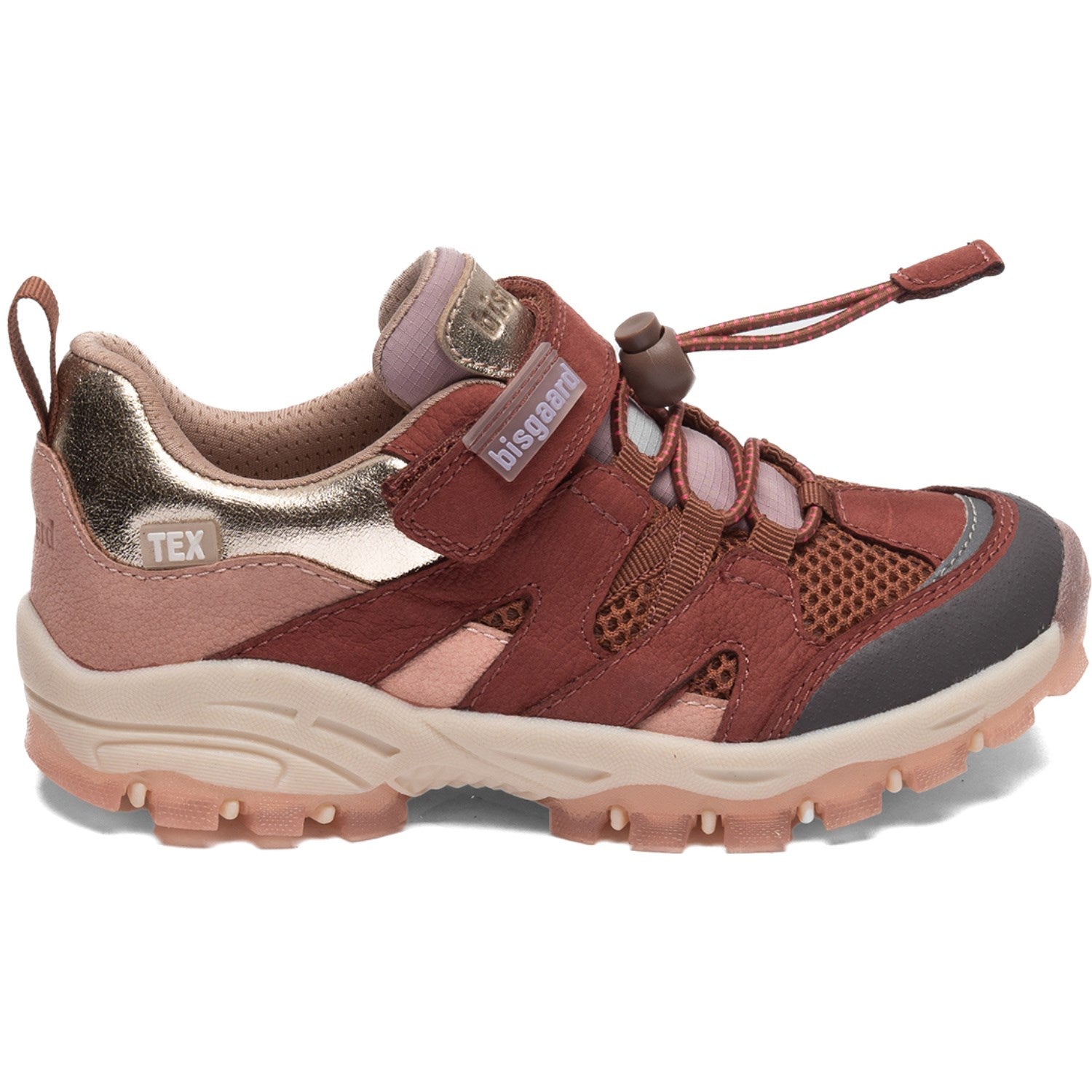 Gled barnet ditt med våre Bisgaard Burgundy Pilou Tex Tex fritidssko og støvletter, som er designet spesielt for livlige utendørseventyr. Disse elegante og eksklusive overgangsstøvlene er produsert av 100% LWG-sertifisert skinn, som lover holdbarhet og miljøansvar gjennom ansvarlig skinnproduksjon. Med en kombinasjon av nubuck og tekstil tilbyr skoene både pusteevne og en robust struktur, perfekt under alle værforhold. Innersiden er foret med et mykt, pustende tekstil og en avtakbar, ergonomisk formet innersåle som sikrer optimal komfort og støtte gjennom hele dagen. Den sklisikre yttersålen er lett og fleksibel, ideell for å fremme en naturlig gangart samtidig som den gir tilstrekkelig grep for sikker lek. Skoene er enkle å ta av og på takket være smarte borrelåsfester og dekorativ elastikk, og det lave skaftet øker også barnets bevegelsesfrihet. Ikke minst er skoenes forsterkede gummitå designet for å takle tøff bruk, som beskytter mot slitasje og gir lengere levetid for skoene. Med sin stilige design og trendy fargekombinasjoner vil disse skoene sikkert bli en favoritt for ethvert eventyrlystent barn.