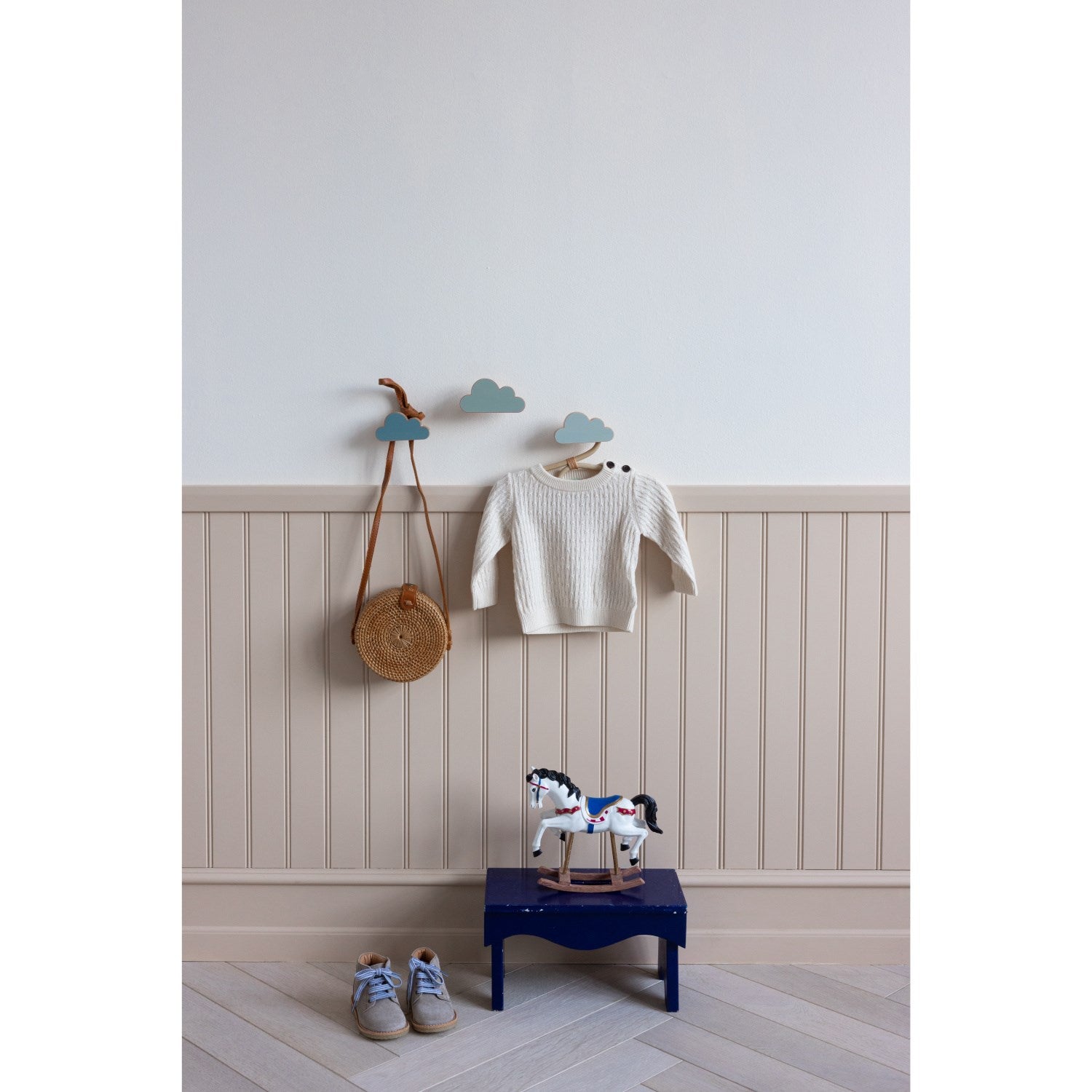 De vakre blå nyansene og det lekne skydesignet bidrar til en følelse av ro og stimulerer samtidig barnets fantasi. Ergonomisk designet for barn, lett tilgjengelige og på en passende høyde, gjør disse krokene til en perfekt tilføyelse i ethvert barns rom. I tillegg til praktisk bruk, fungerer krokene også som en dekorativ detalj som kan tilpasse seg alle barnerom interiør.
