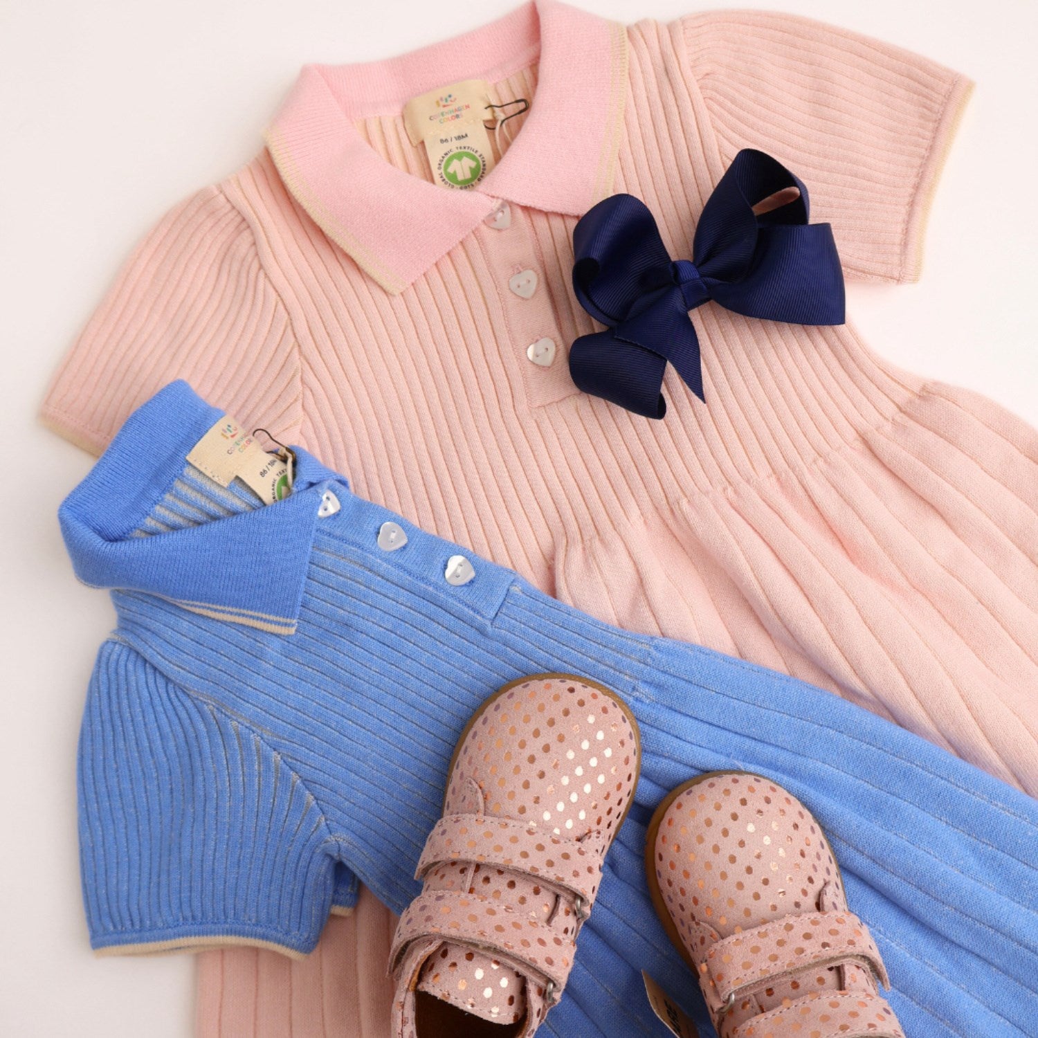 COPENHAGEN COLORS Ballerinasko/Cream Comb. Rib Polo Strikket kjole - 86 er restordre og vil bli sendt så snart det er tilbake på lager.