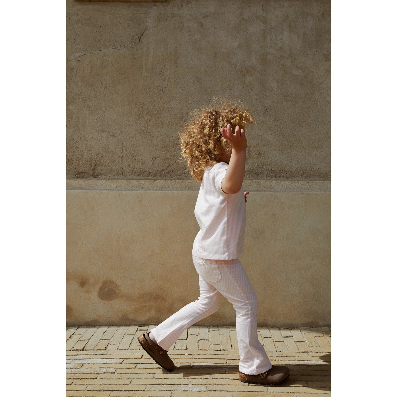 Lys opp hverdagen til barnet ditt med de stilige og komfortable stripete trompetbuksene fra COPENHAGEN COLORS. Disse buksene er laget av 100 % økologisk bomull, noe som gjør dem både myke og behagelige å ha på. Det slående stripemønsteret og den sjarmerende sløyfen foran tilføyer en leken vri, mens designet sikrer bevegelsesfrihet. Perfekt for alt fra skolegang til lekestunder.