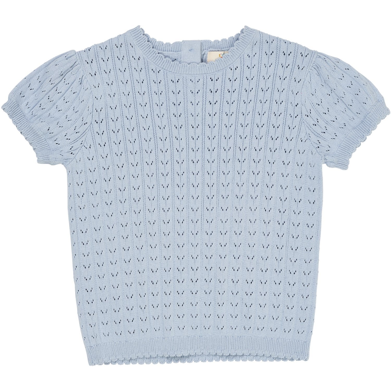 Gled ditt barn med en nydelig Dusty Blue strikket pointelle bluse fra COPENHAGEN COLORS. Denne blusen er laget av et mykt og pustende materiale som sikrer komfort gjennom hele dagen. Det elegante pointelle-mønsteret tilfører et stilig preg, mens den behagelige passformen gjør den ideell for alt fra lek til familiesammenkomster. Blusen er enkel å kombinere med alt fra jeans til skjørt, og er både slitesterk og lett å ta vare på, noe som gjør den perfekt for små eventyrere. En essensiell del av barnegarderoben som kombinerer funksjonalitet med et tidløst design.