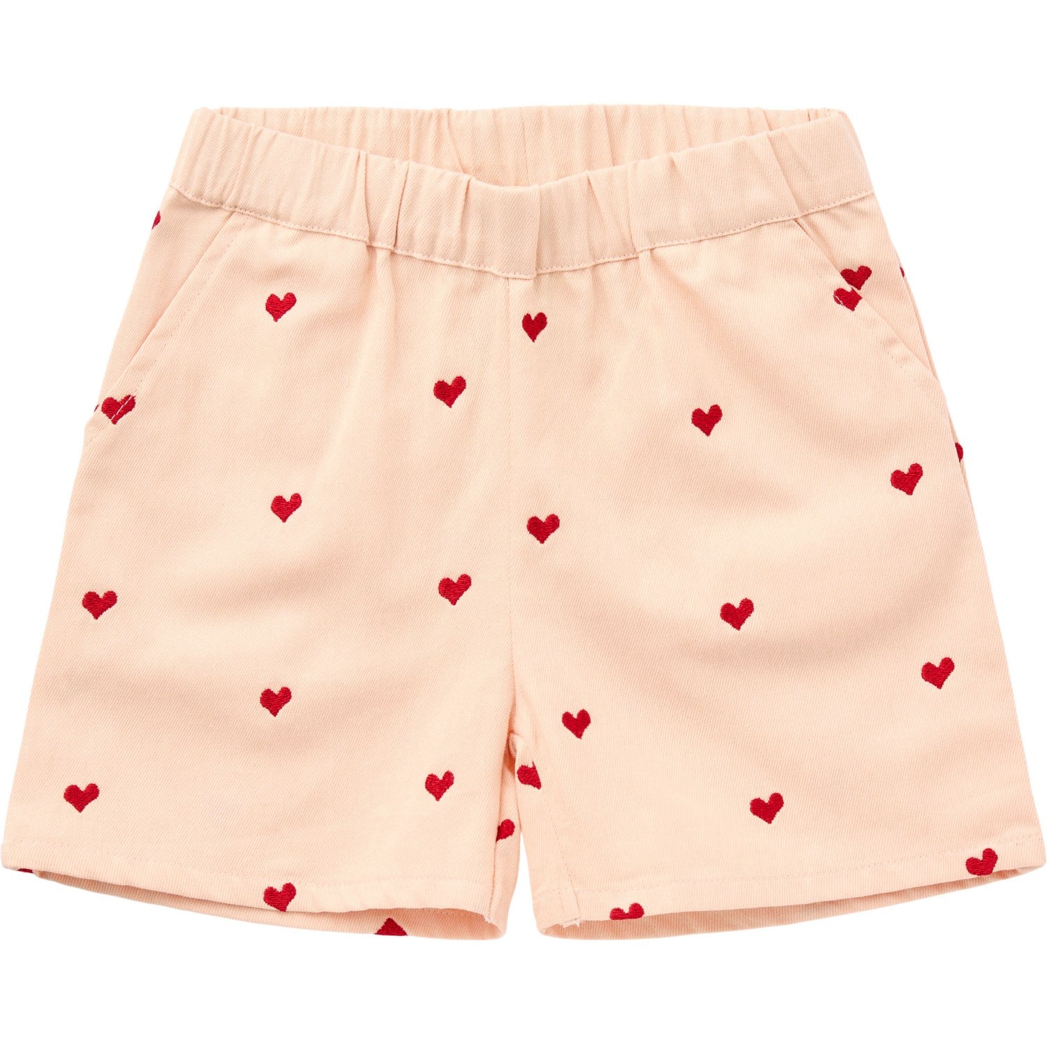 Smårollingene vil stråle av glede i disse Twill Heart Shorts fra Copenhagen Colors. Designet i støvfarget rosa med sjarmerende bærfargede hjerter, er disse shortsene både stilige og komfortable. Laget av 100% økologisk bomull, sikrer det myke, pustende twillstoffet optimal komfort og bevegelighet for aktive sommerdager. En elastisk linning gjør dem enkle å ta på og av, noe som gir både barnet og foreldrene en stressfri opplevelse. Det lekne hjertemønsteret gjør disse shortsene til en favoritt både til hverdagsbruk og fester. Dette er bærekraftige og slitesterke plagg som enkelt kan vaskes og brukes om igjen – perfekt for lek og moro hele sommeren!