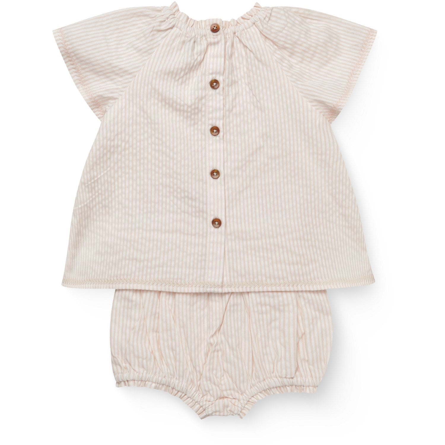 COPENHAGEN COLORS Dusty Rose W Cream Stripe W. Flower Seersucker Baby-Set W. Embroidery