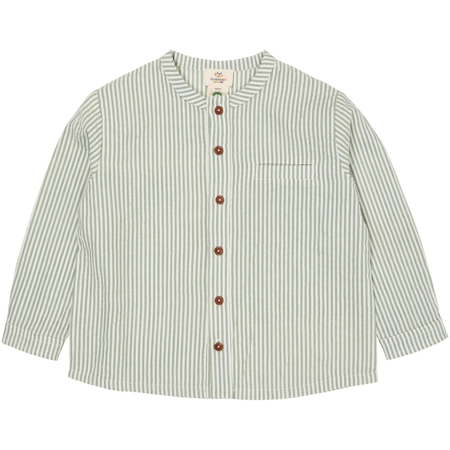 COPENHAGEN COLORS Green W Cream Stripe Seersucker Skjorte W. Placket