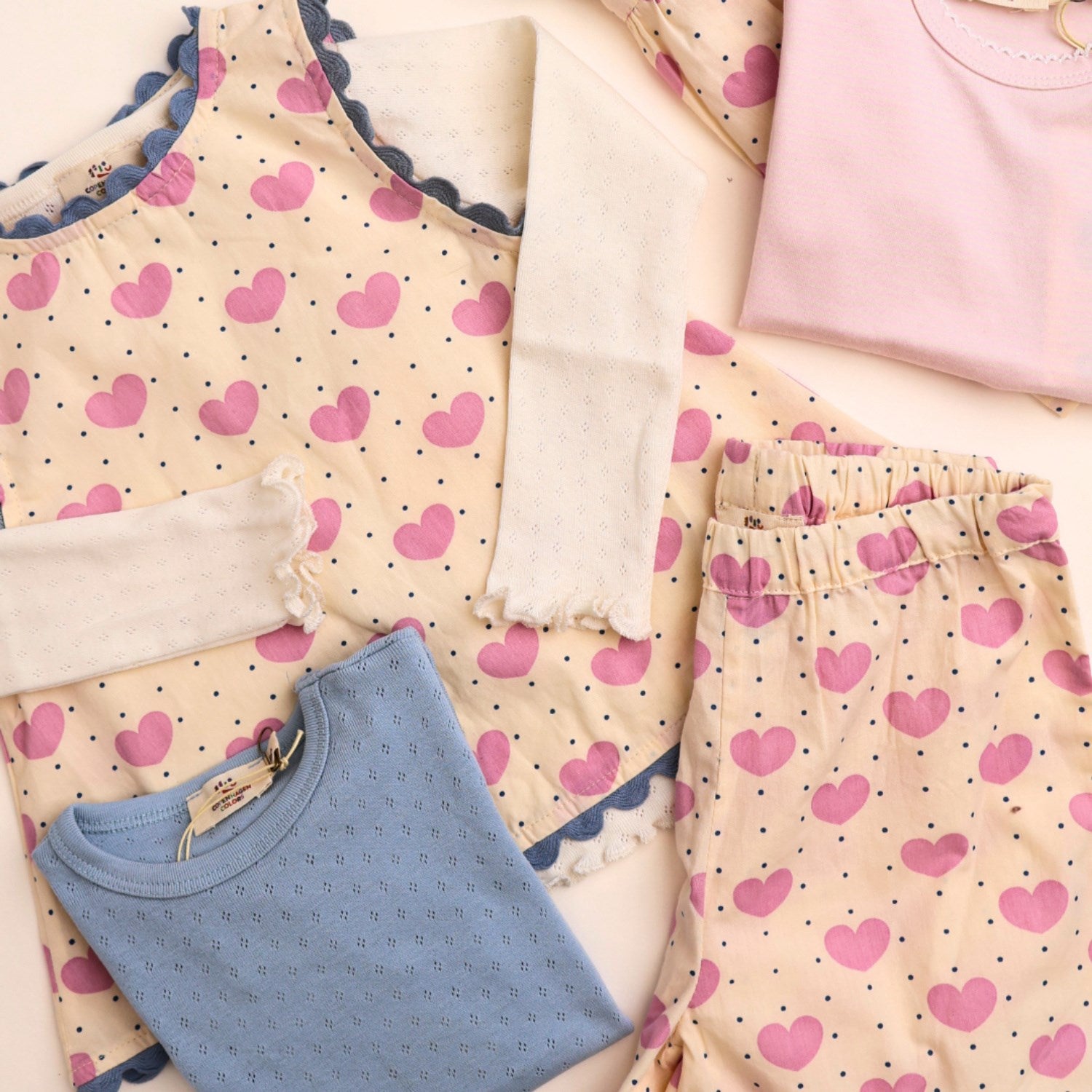 COPENHAGEN COLORS Heart Aop Heart & Dots Shorts med volanglommer