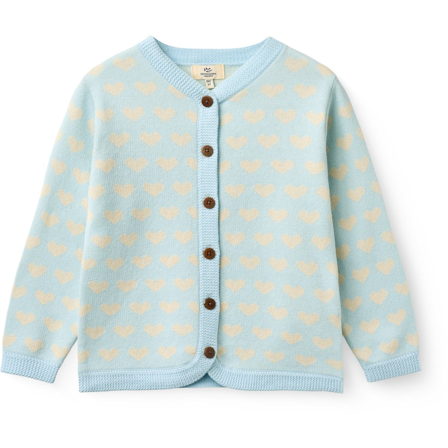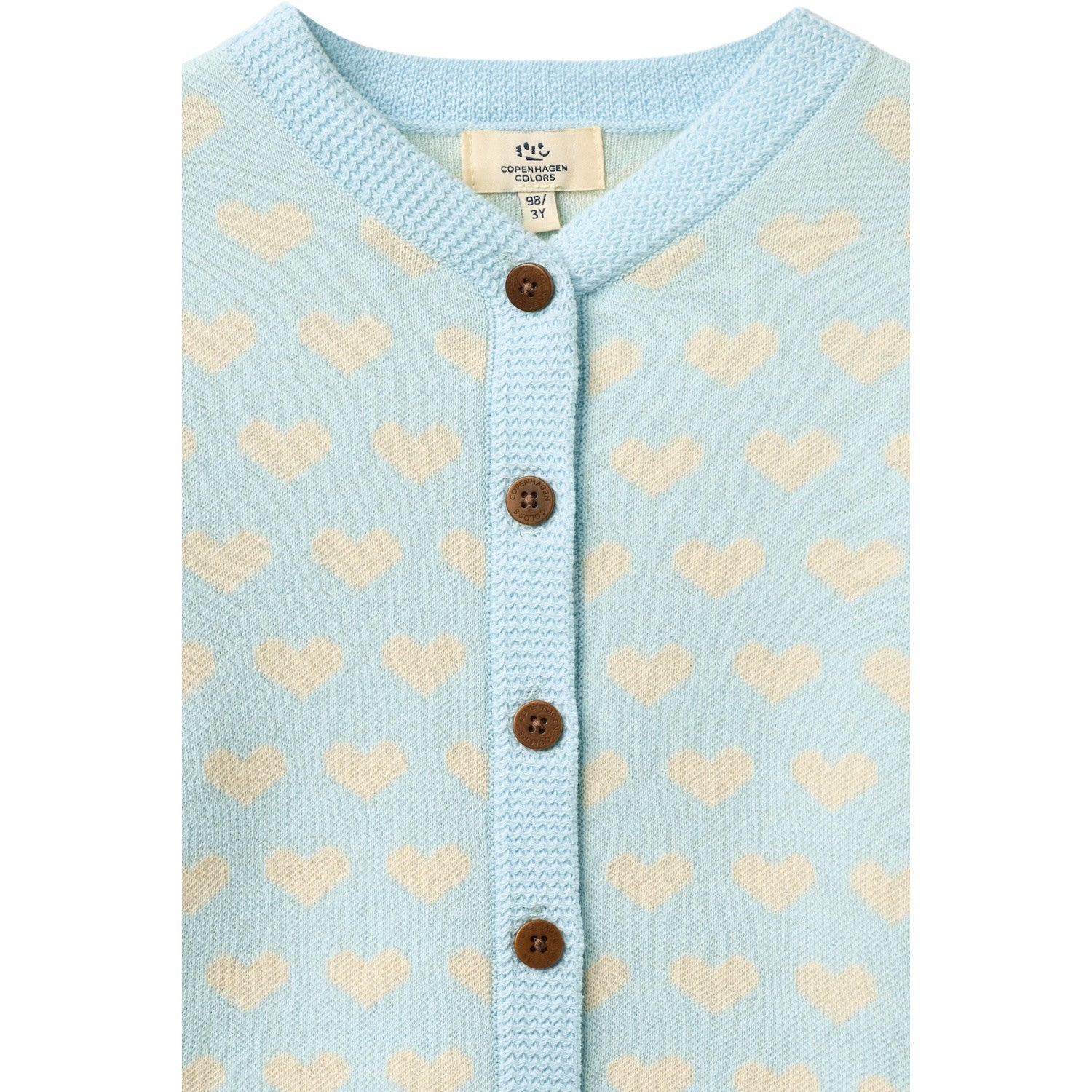 COPENHAGEN COLORS Ice Blue Comb Heart Cardigan W. Crochet Edge - 80 er restordre og vil bli sendt så snart det er tilbake på lager.