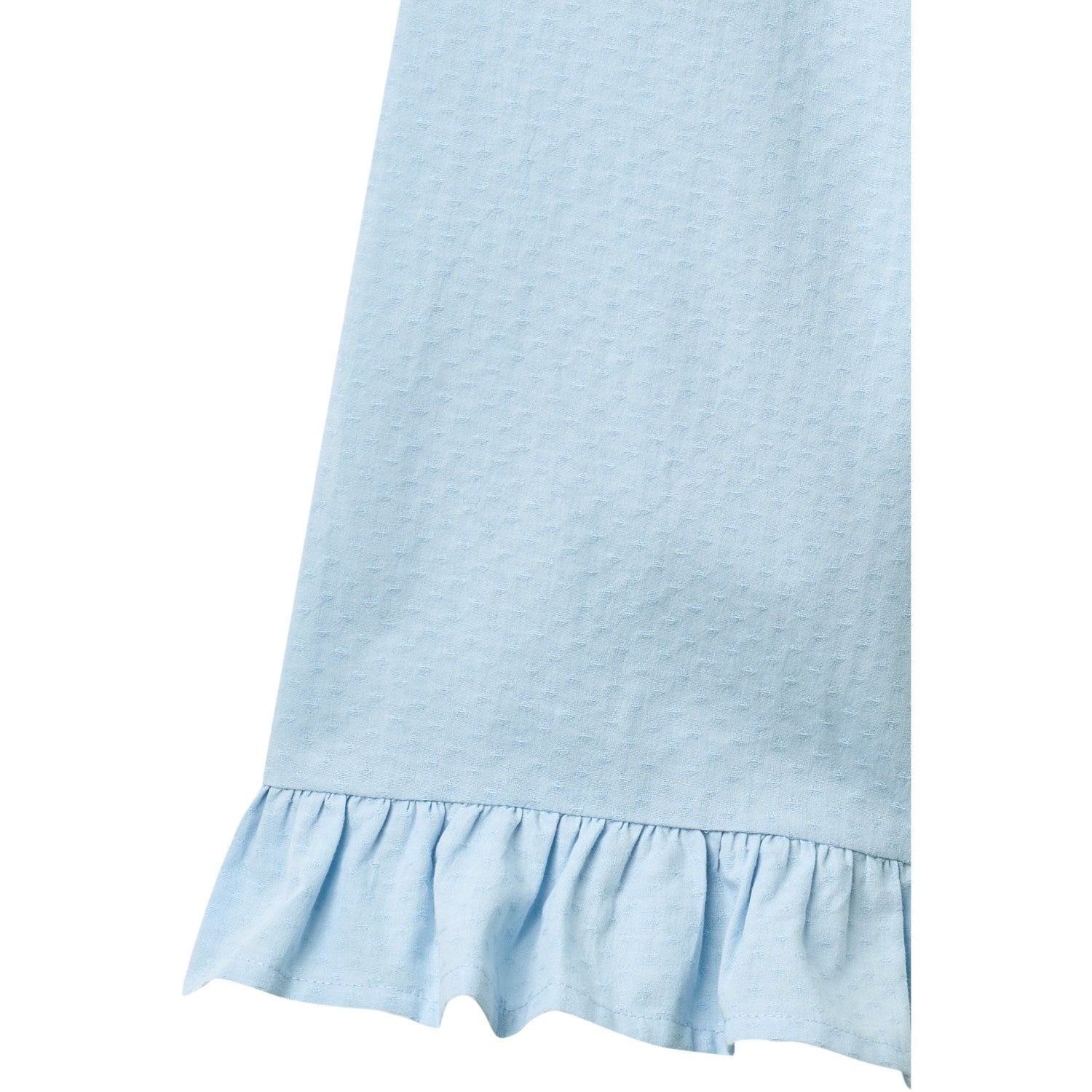 Gi barnas garderobe en stilfull oppdatering med Copenhagen Colors Lt. Blue Bukser 3/4. Disse buksene, laget av myk, teksturert GOTS-sertifisert bomull, tilbyr ultimat komfort og varighet. Det elastiske midjebåndet og den avslappende silhuetten sørger for en behagelig passform hele dagen. Med sine stilige utvidede kanter og delikate volanger, legger de til et snev av sjarm. Praktiske sidelommer foran og lapplommer bak øker funksjonaliteten. Tilgjengelig i fargene Light Rose, Dusty Blue og Pale Yellow, er de enkle å matche med både bluser og t-skjorter for et uanstrengt og søtt utseende.