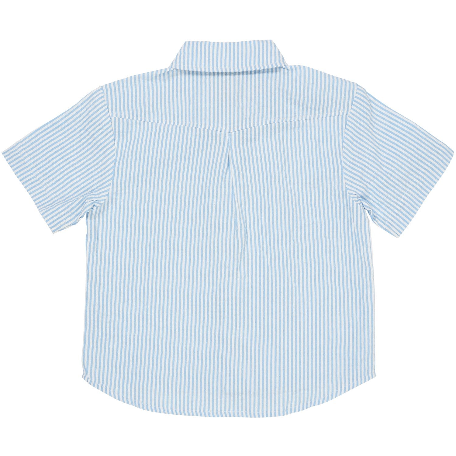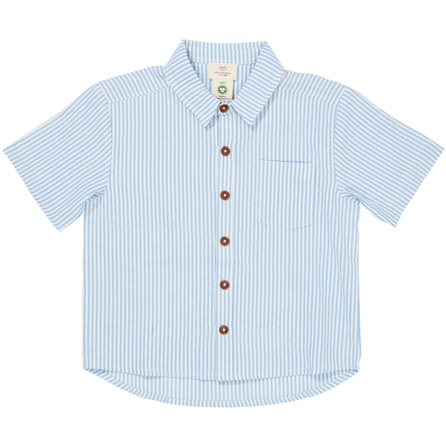 Gi barnet ditt en blanding av stil og komfort med Bæk og Bølge Blusen. Den er fremstilt av mykt, pustende materiale som garanterer komfort gjennom hele dagen. Med sitt skyblå farge og kremhvite striper i seersucker-stil, tilbyr denne kortermede skjorten en leken og samtidig raffinert look. Komforten forsterkes av den løse passformen, som gir optimal bevegelsesfrihet, enten det er tid for lek eller for mer formelle anledninger.