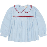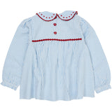 COPENHAGEN COLORS Sky Blue W Cream Stripe W. Berry Seersucker Ls Tunic W. Hearts