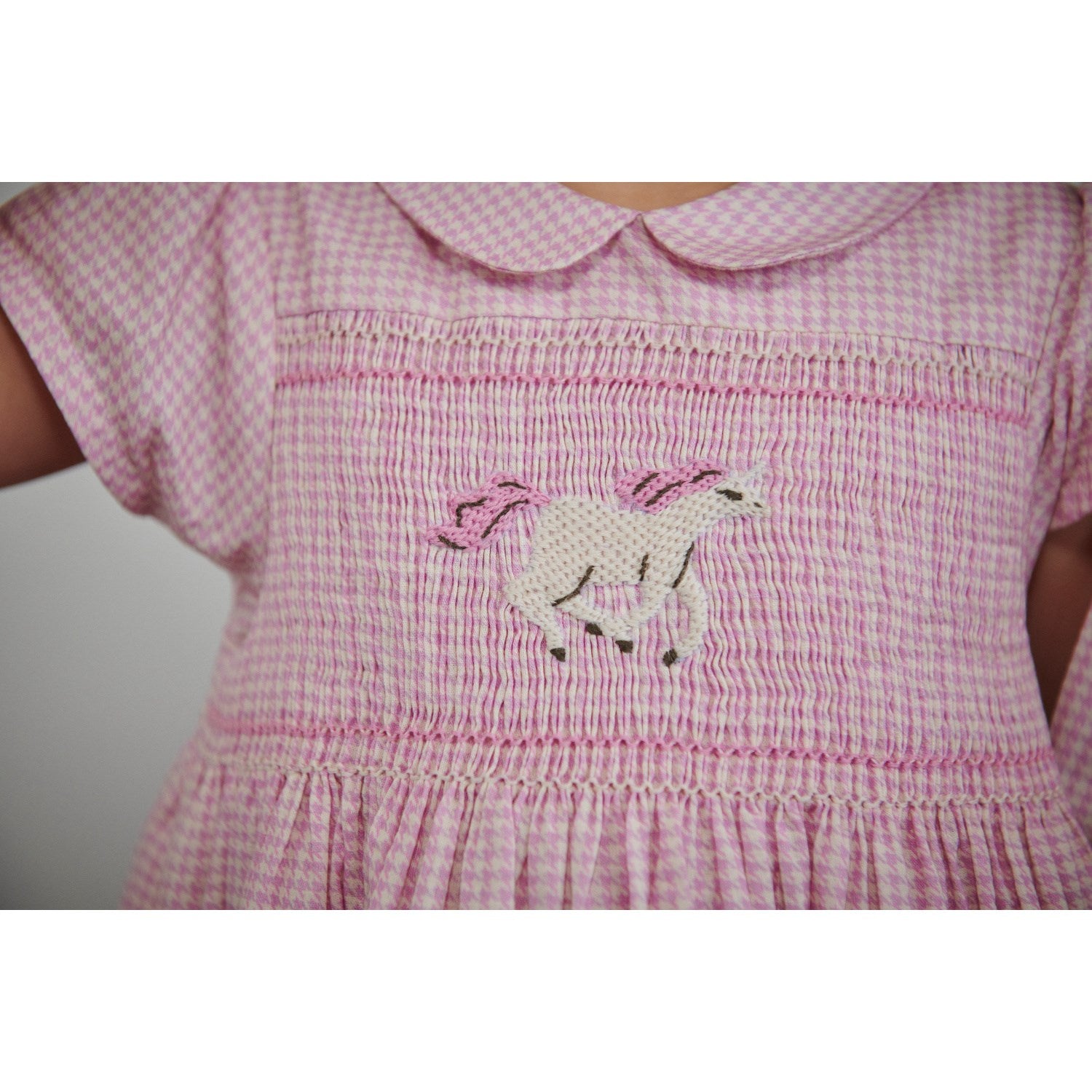 COPENHAGEN COLORS Syringa Comb. Houndstooth Kjole W. Handmade Unicorn Embroidery Og Smock - 80 er restordre og vil bli sendt så snart det er tilbake på lager.