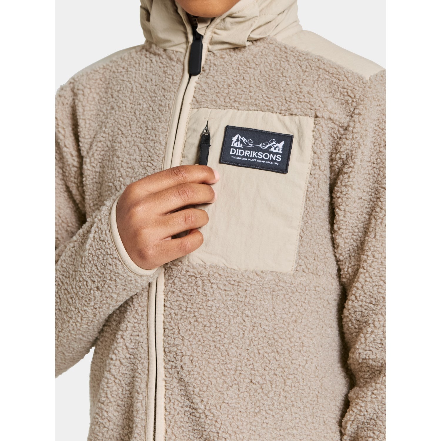 Oppdag den myke og behagelige Didriksons Strand Exa Kids FZ 2-fleecejakken perfekt for friske dager. Designet i en elegant beige farge, denne jakken kombinerer stil med funksjonalitet. Den slitesterke konstruksjonen og den lettstelte kvaliteten sikrer at plagget holder seg fint lenge, mens dens behagelige passform og pustende materialer tilbyr optimal komfort for barnet. Perfekt for alt fra lek i parken til avslappede familieutflukter.