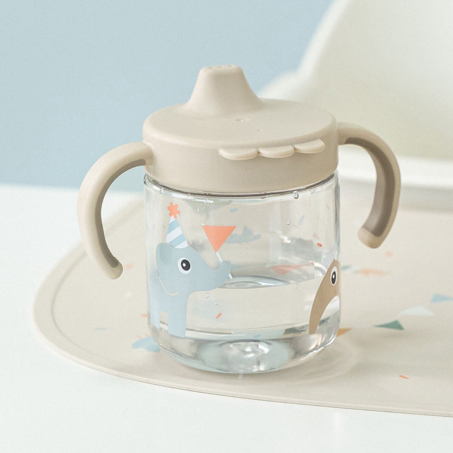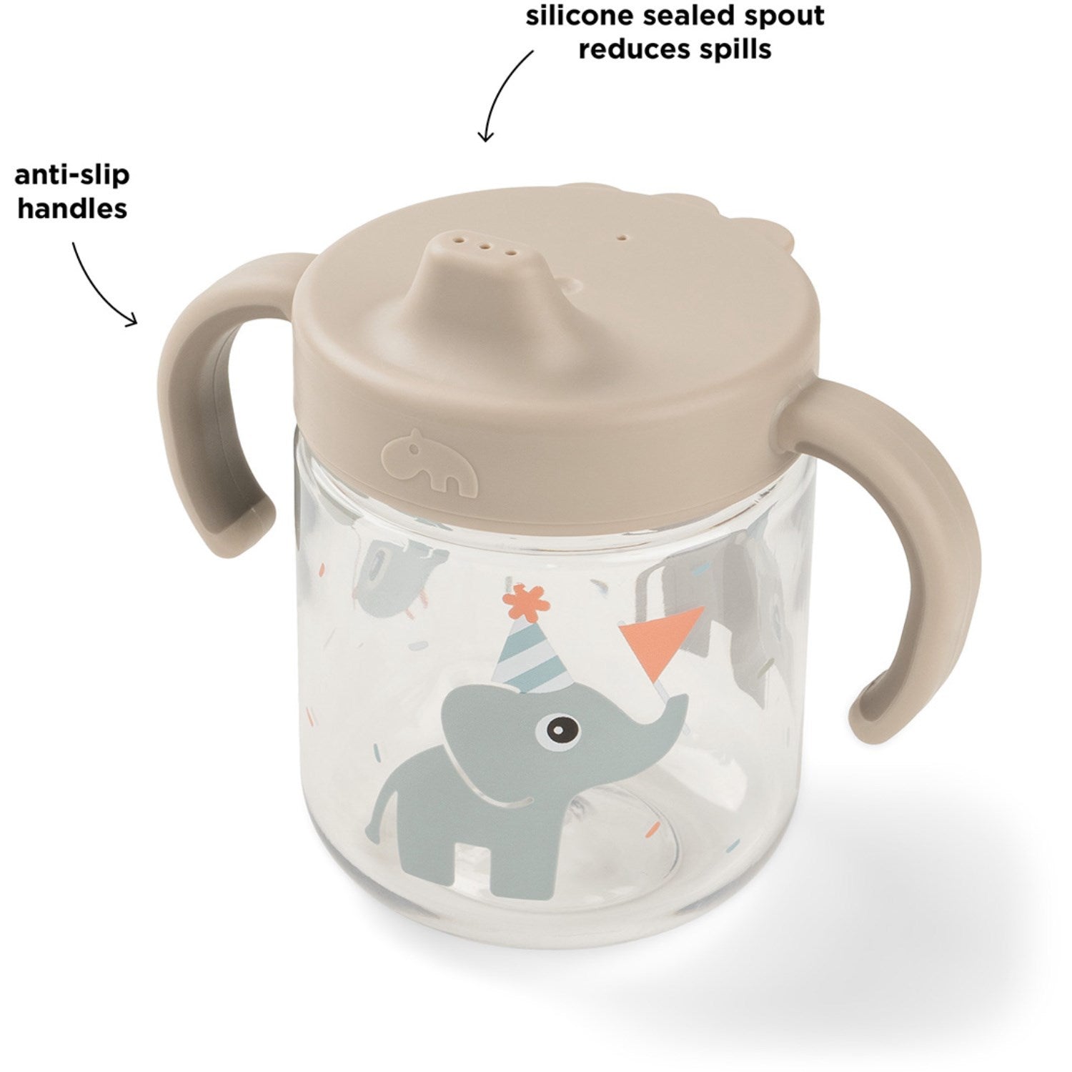 Oppdag DonebyDeer Celebration Sand Læringstudkop med to håndtak – den perfekte kopp for småbarn som lærer å drikke selv. Denne smarte koppen er utstyrt med en silikonforseglet tut som minimerer søl og fremmer selvstendig drikking. De sklisikre håndtakene er spesielt designet for små barns hender, slik at koppen er enkel og behagelig å holde. Robust konstruert for å motstå daglig bruk, tåler denne koppen både mikrobølgeovn og oppvaskmaskin, noe som gjør rengjøring og vedlikehold til en lek. Den er ideell for daglig bruk og underholder samtidig barnet med sin stimulerende design.